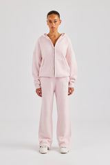 Hooded Zip Through Knitted Tracksuit - Baby Pink