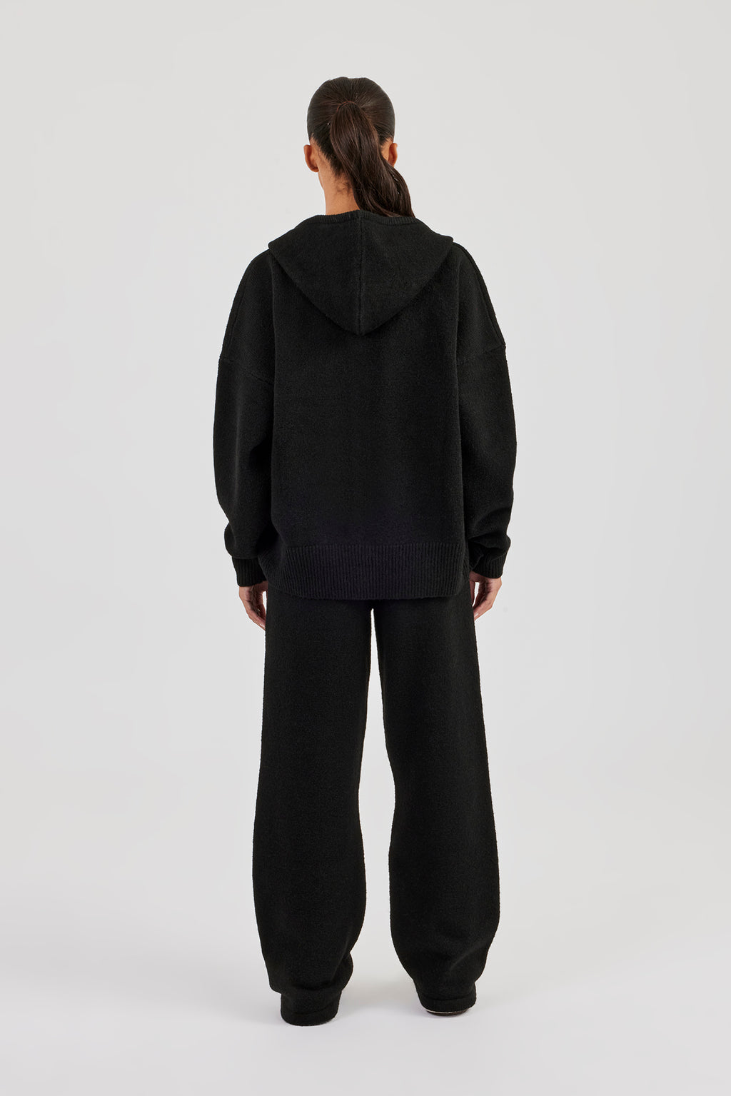 Black Zip Through Hoodie in a soft touch knit with jacquard C logo.