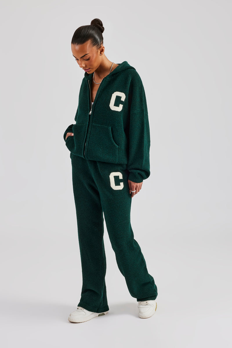 Green wide leg jogger in a soft touch knit with jacquard C logo.