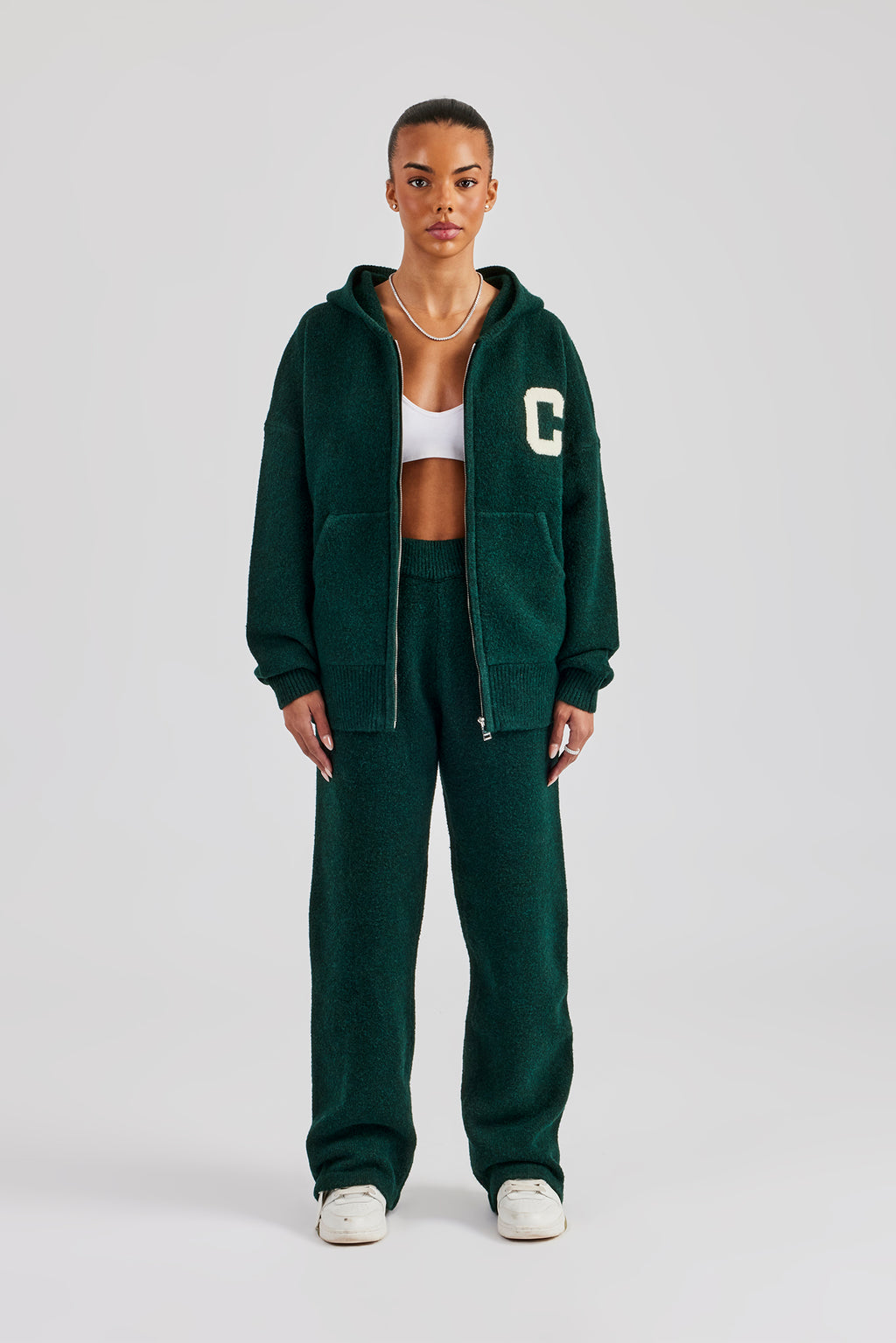 Green zip Through Hoodie in a soft touch knit with jacquard C logo.