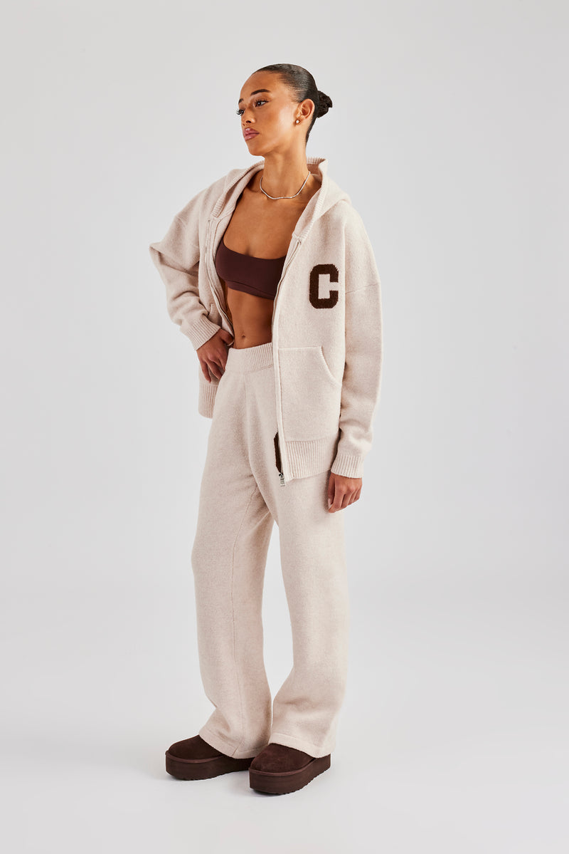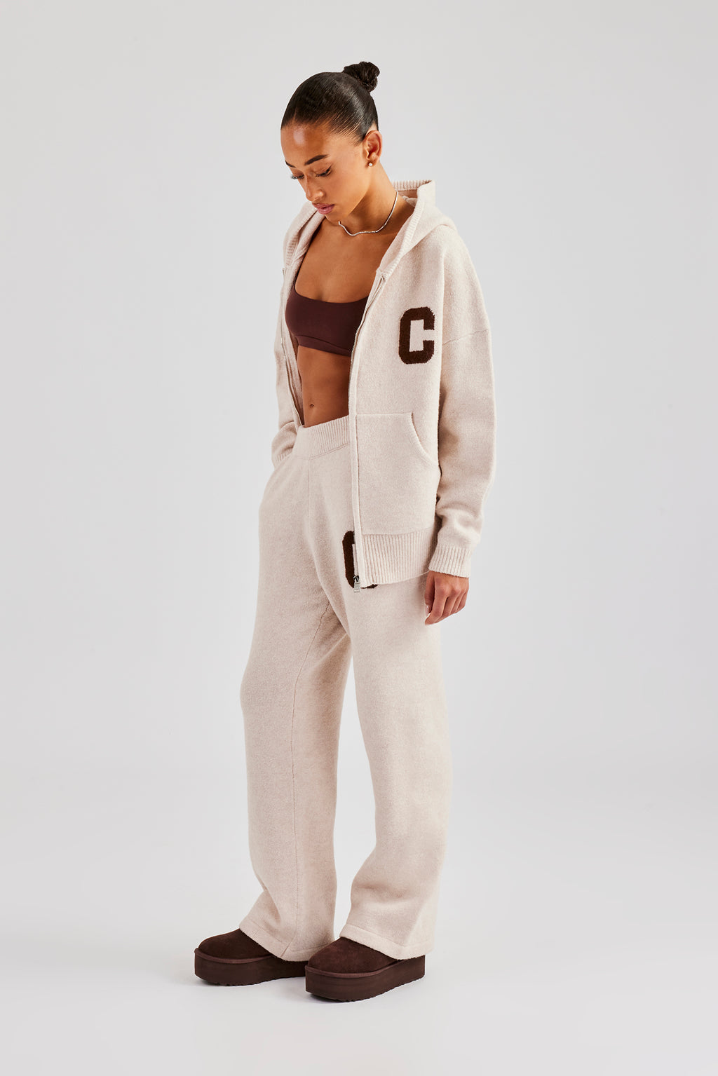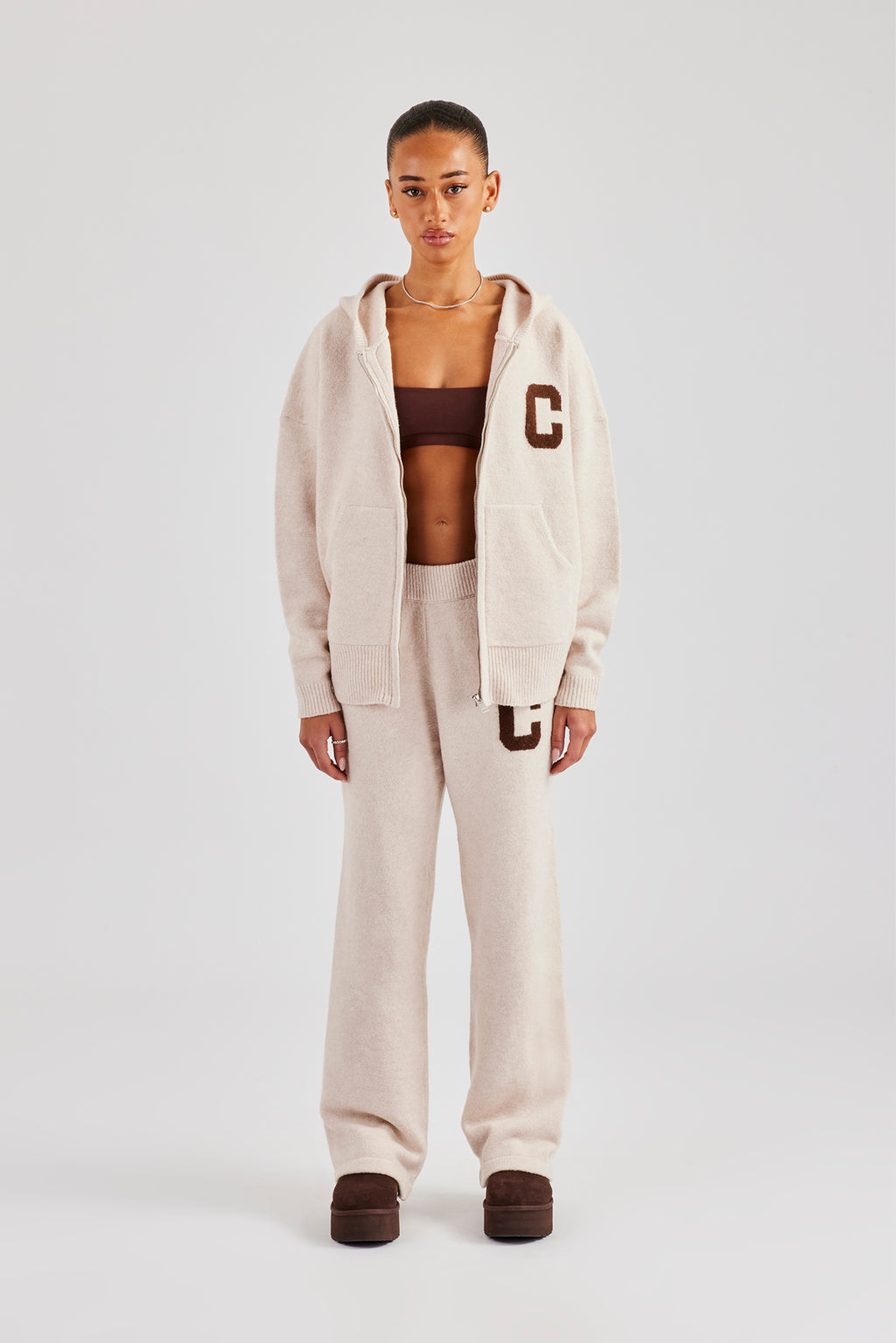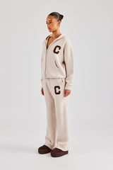 Wide leg jogger in a soft touch knit with jacquard C logo. Pair with matching knitted hoodie to complete the look.