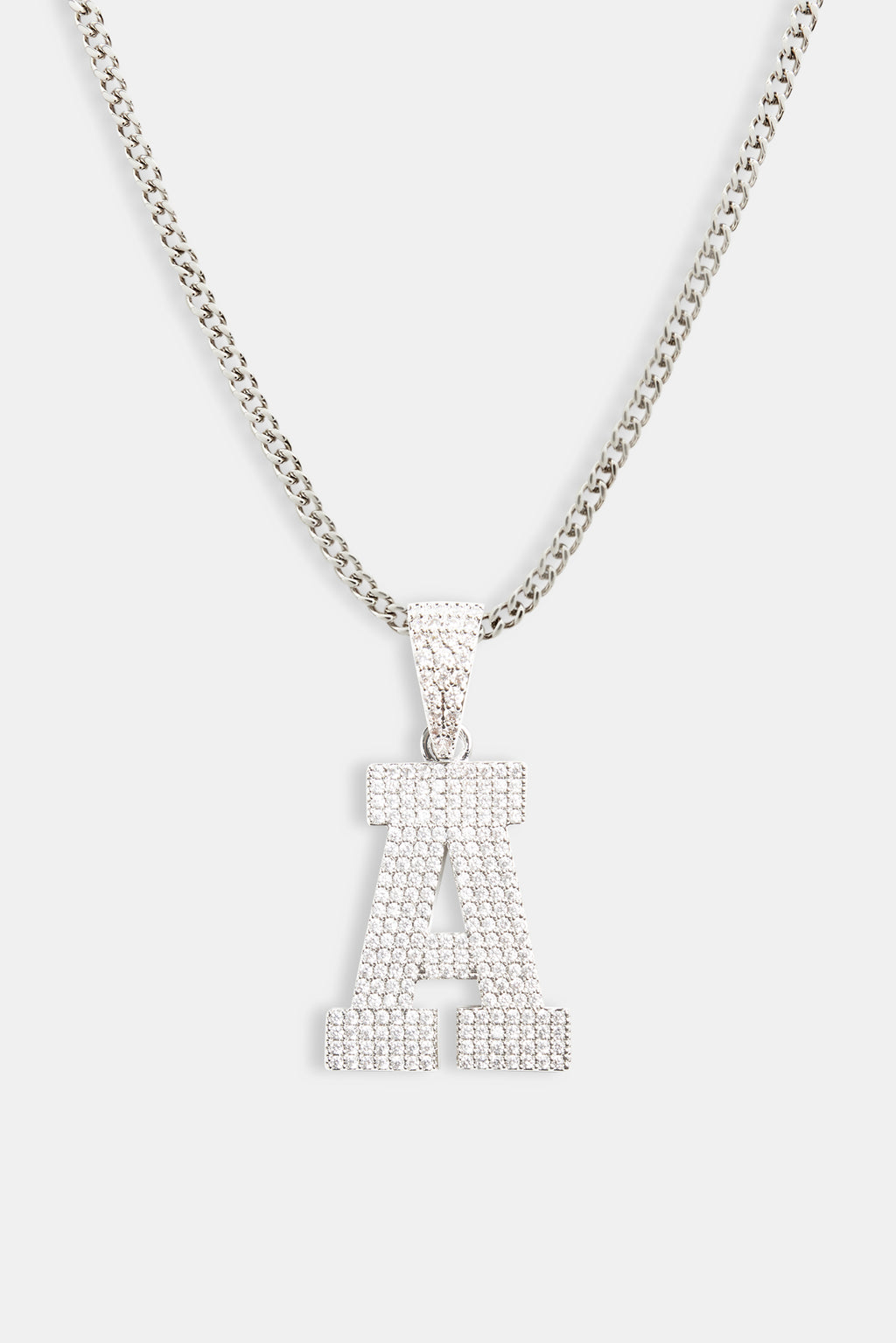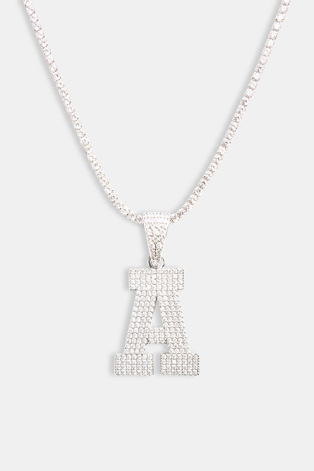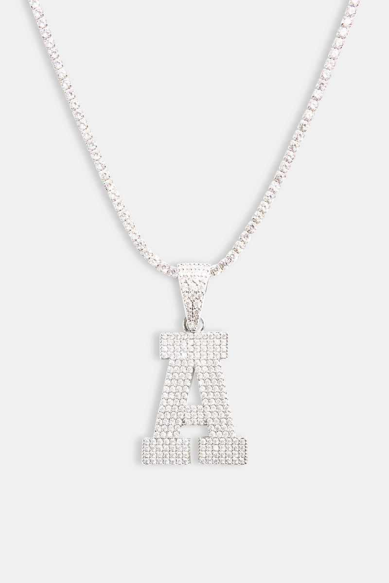 Iced Letter Motif Pendant in White and finished with Cubic Zirconia stones.