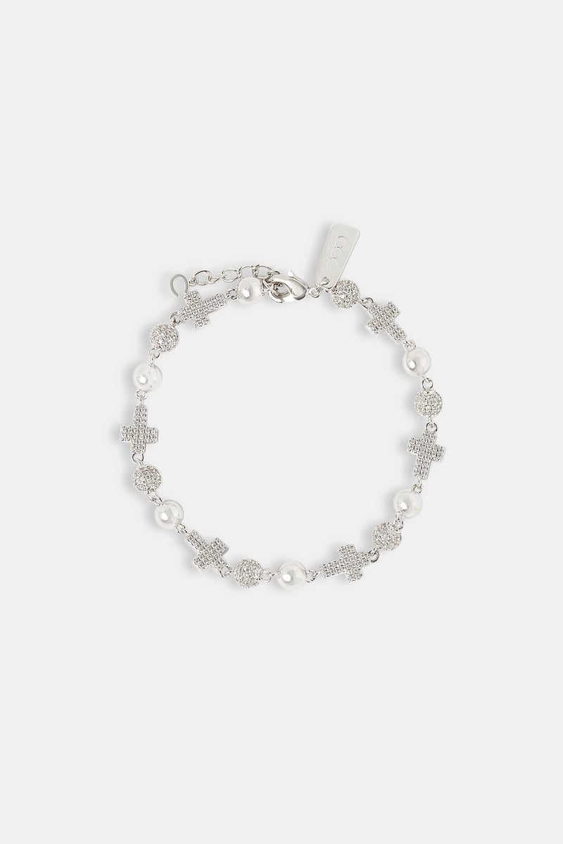 Our Iced Bead & Cross Bracelet goes hard. Pair with any pearl chain, to be worn for any occasion.