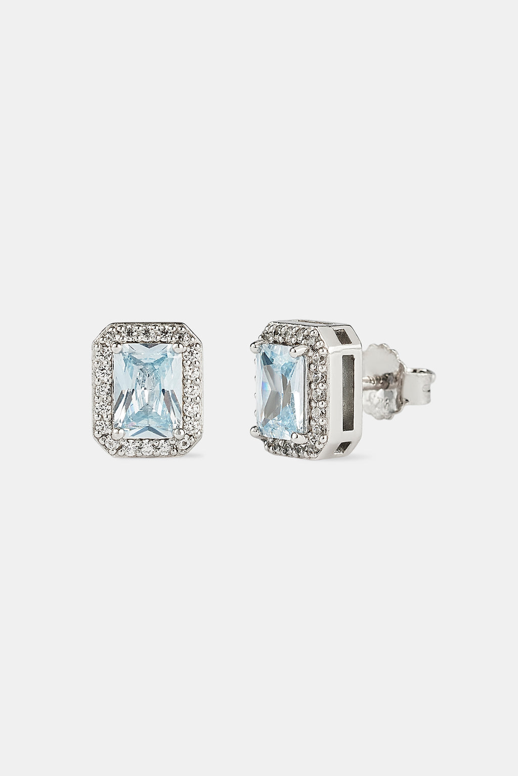 The Iced Blue Gemstone Stud Earrings feature vibrant blue centre stones framed in pave CZs for that perfect mix of bold and colour.