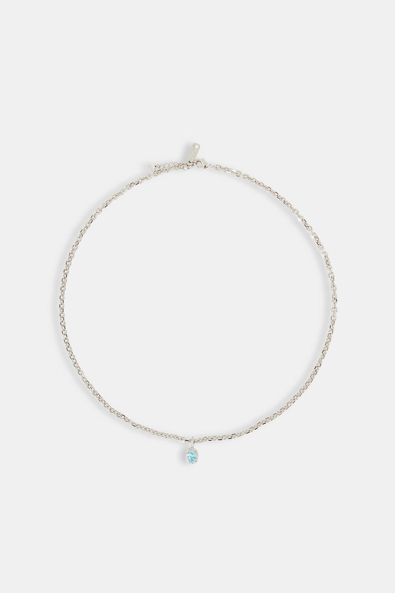 The Iced Blue Oval Gemstone Necklace features a stunning blue oval gemstone.