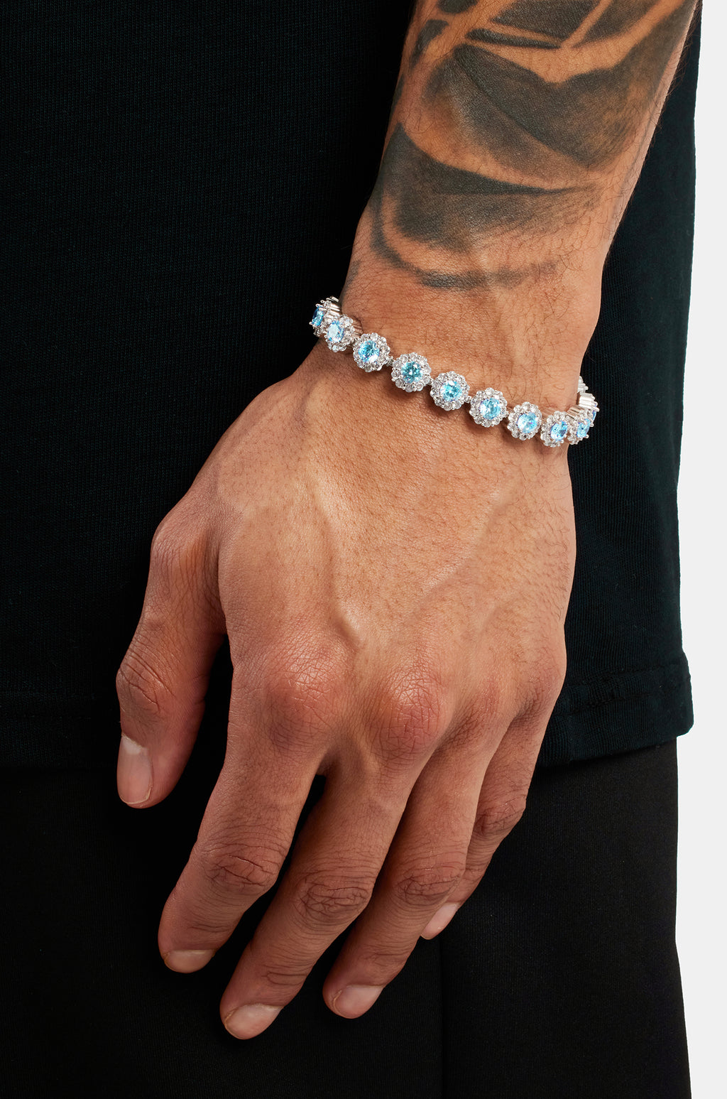 Our Iced Blue Round Tennis Bracelet hits different. Made to shine from all angles. Pair with one of our iced out chains or layer up to complete the look.