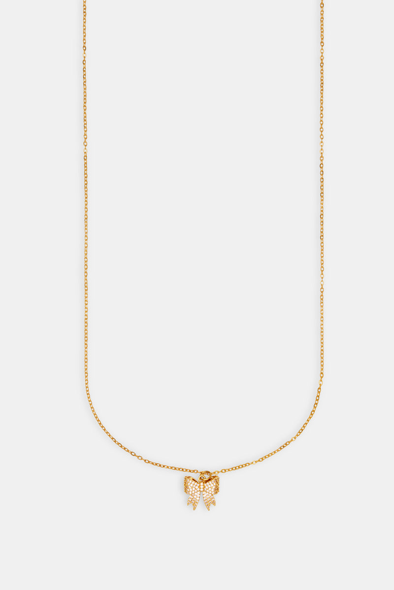 Our Iced Bow Necklace goes hard. Layer up with other necklaces & pendants or wear alone. Stand out pendant right here.