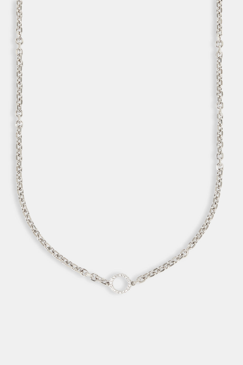 The Iced Circle Outline Pendant Necklace keeps it simple but seriously icy with a delicate circle pendant lined in shimmering CZ stones. Perfect for layering or going solo when you want that subtle flex.