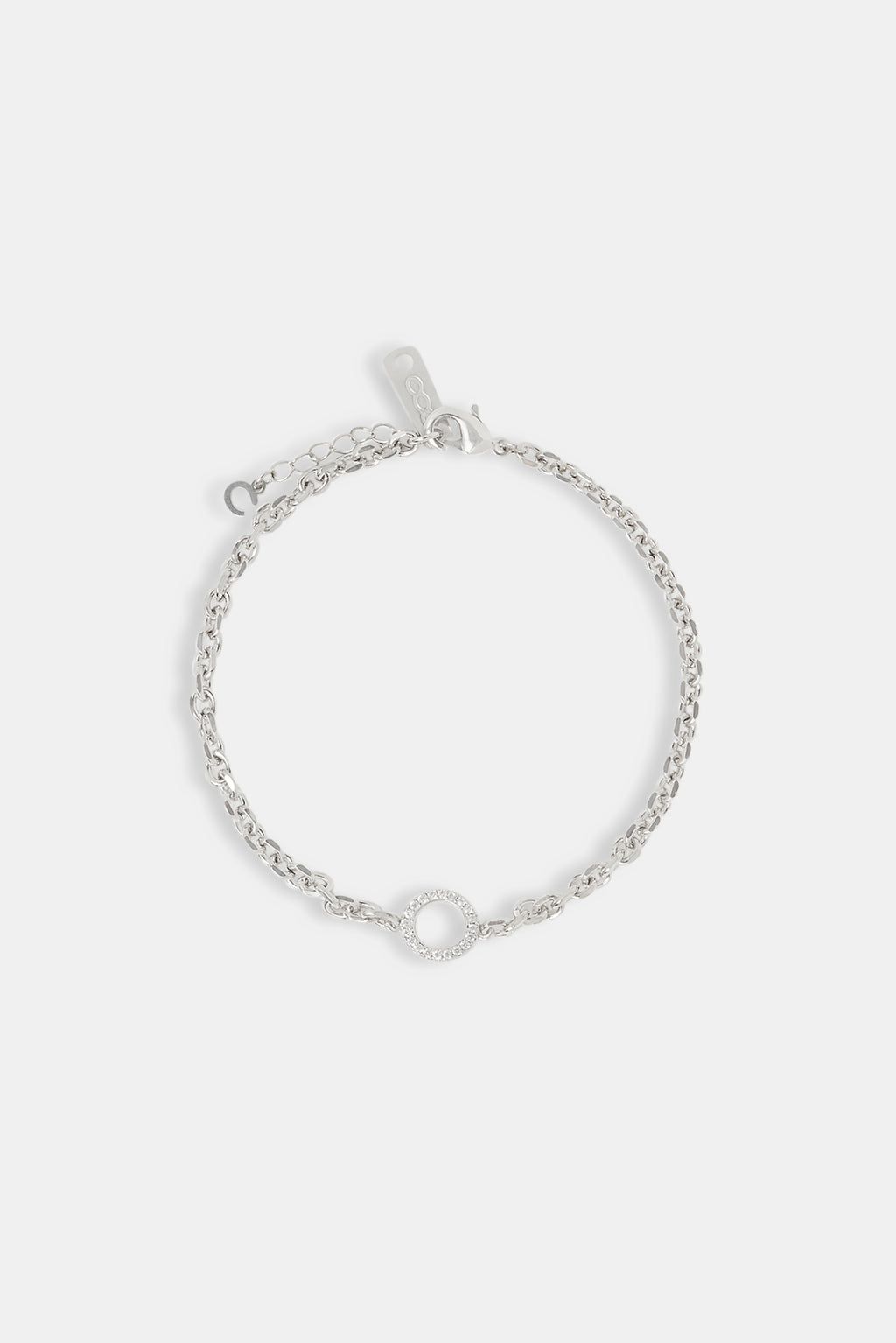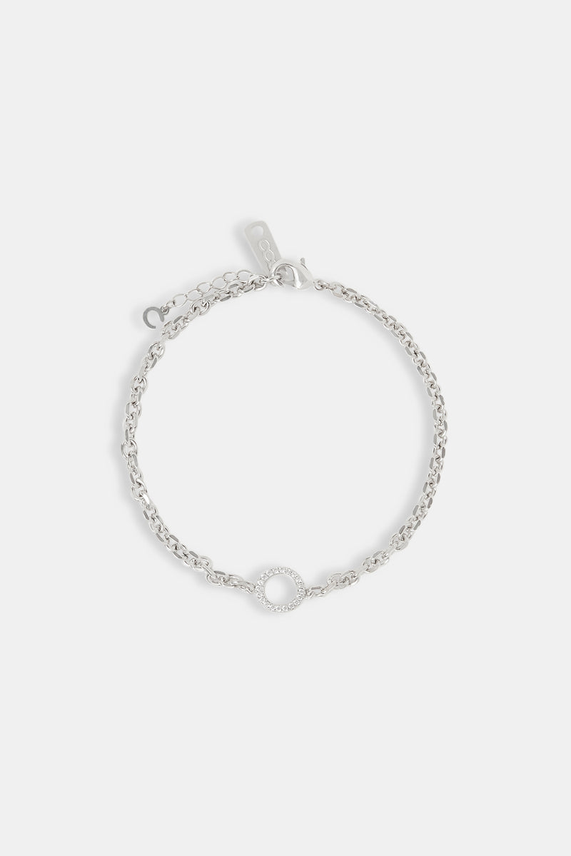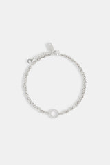 The Iced Circle Outline Rolo Bracelet features open circle links, each fully iced with CZs and set on a sleek rolo chain. Balanced, bold, and built to layer—or stand strong on its own.