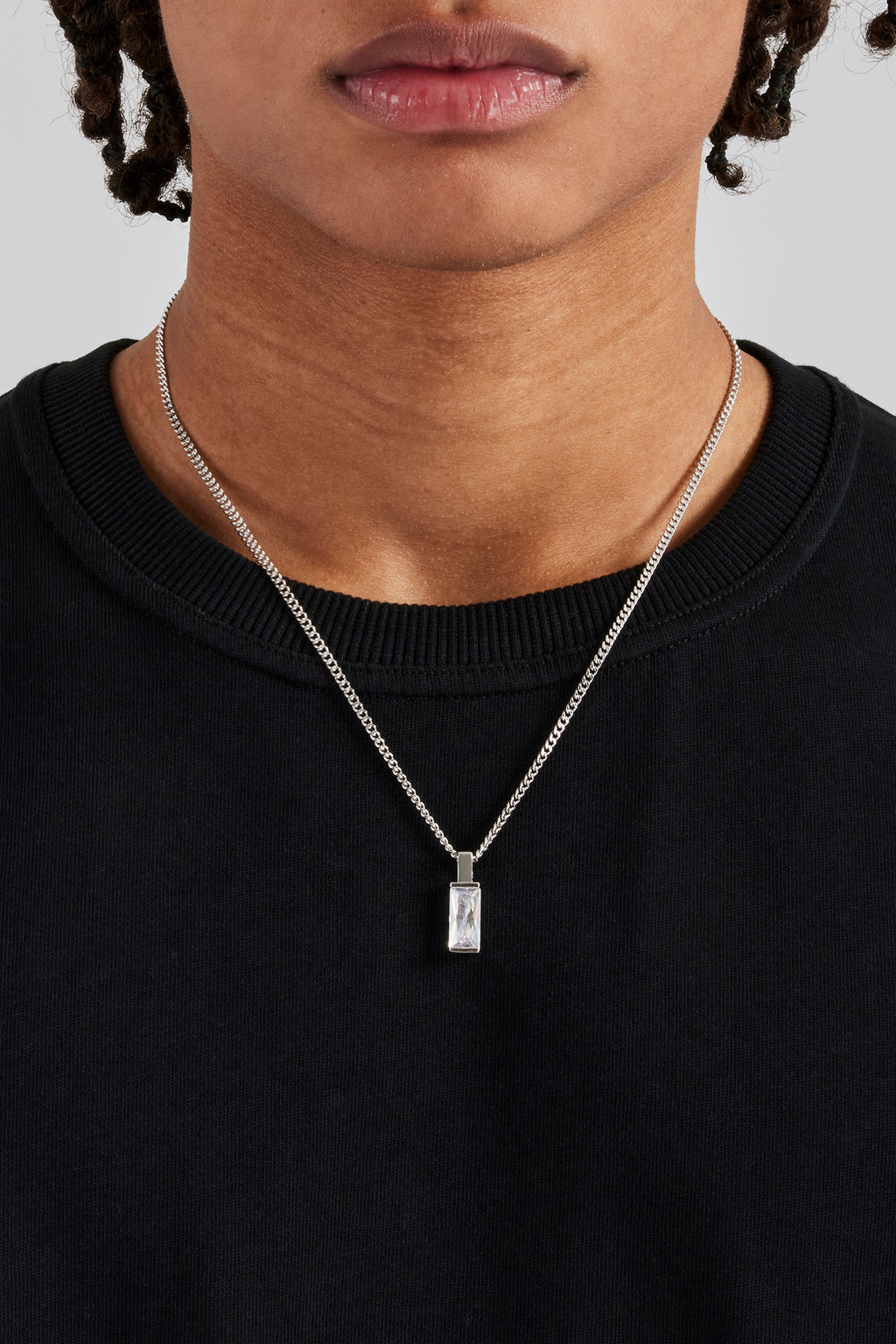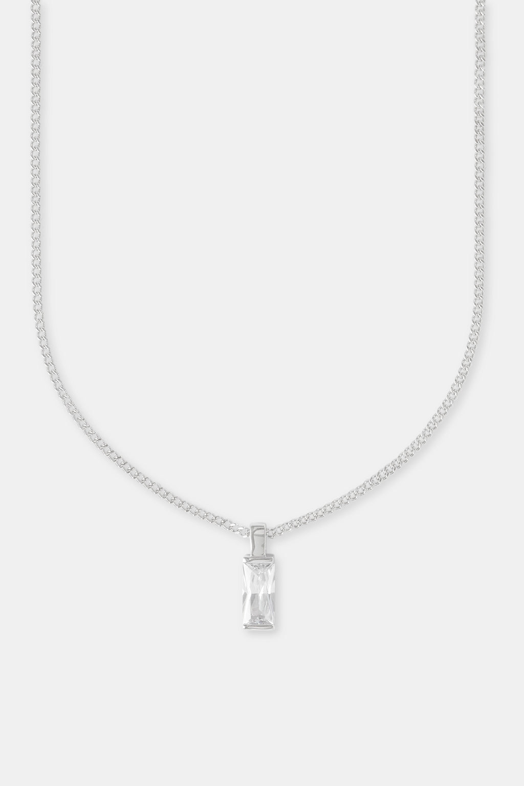 The Iced Clear Baguette Pendant Cuban Necklace is a sleek and timeless piece. Guaranteed to upgrade your fit; stacked or solo, its the perfect pendant.
