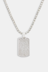 Iced Dog Tag Pendant, Rhodium Plated and finished with Cubic Zirconia stones. Unmatched shine for unparalleled style.