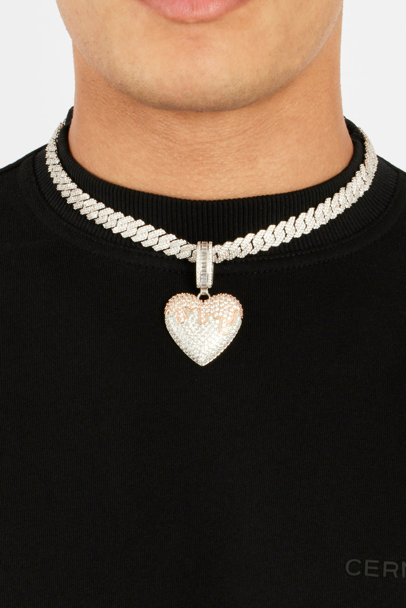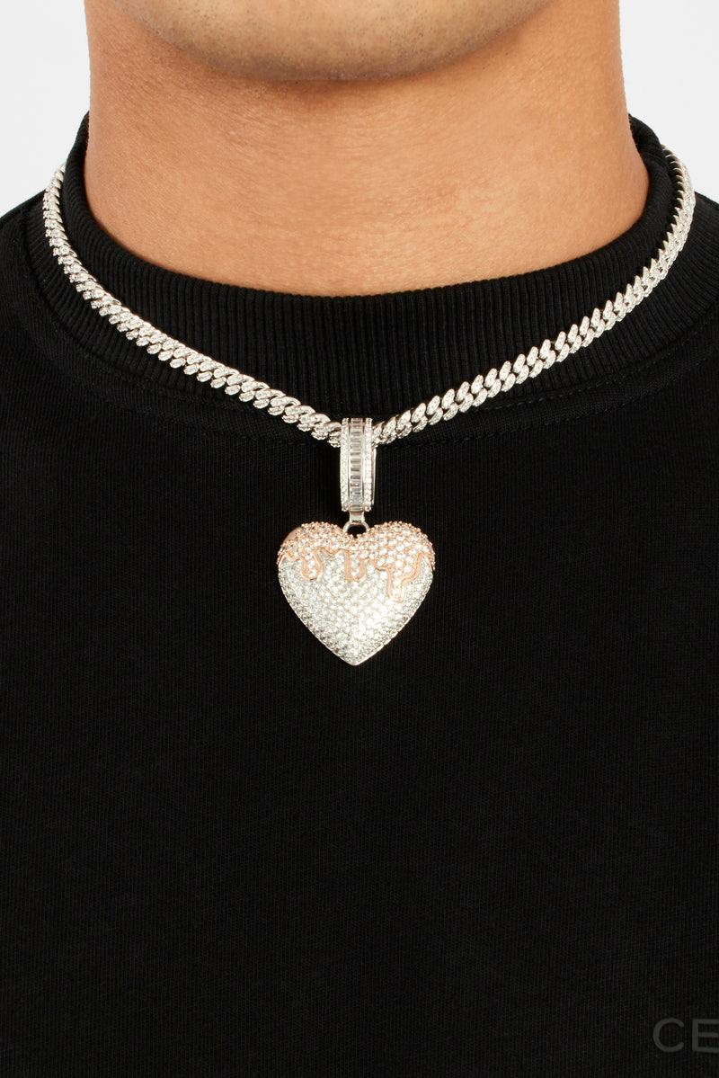 Iced Heart Melt Pendant in White and Rose Gold finished with Cubic Zirconia stones.