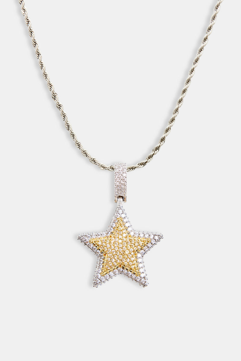 Iced Star Motif, Rhodium Plated and finished with Cubic Zirconia stones. Unmatched shine for unparalleled style.