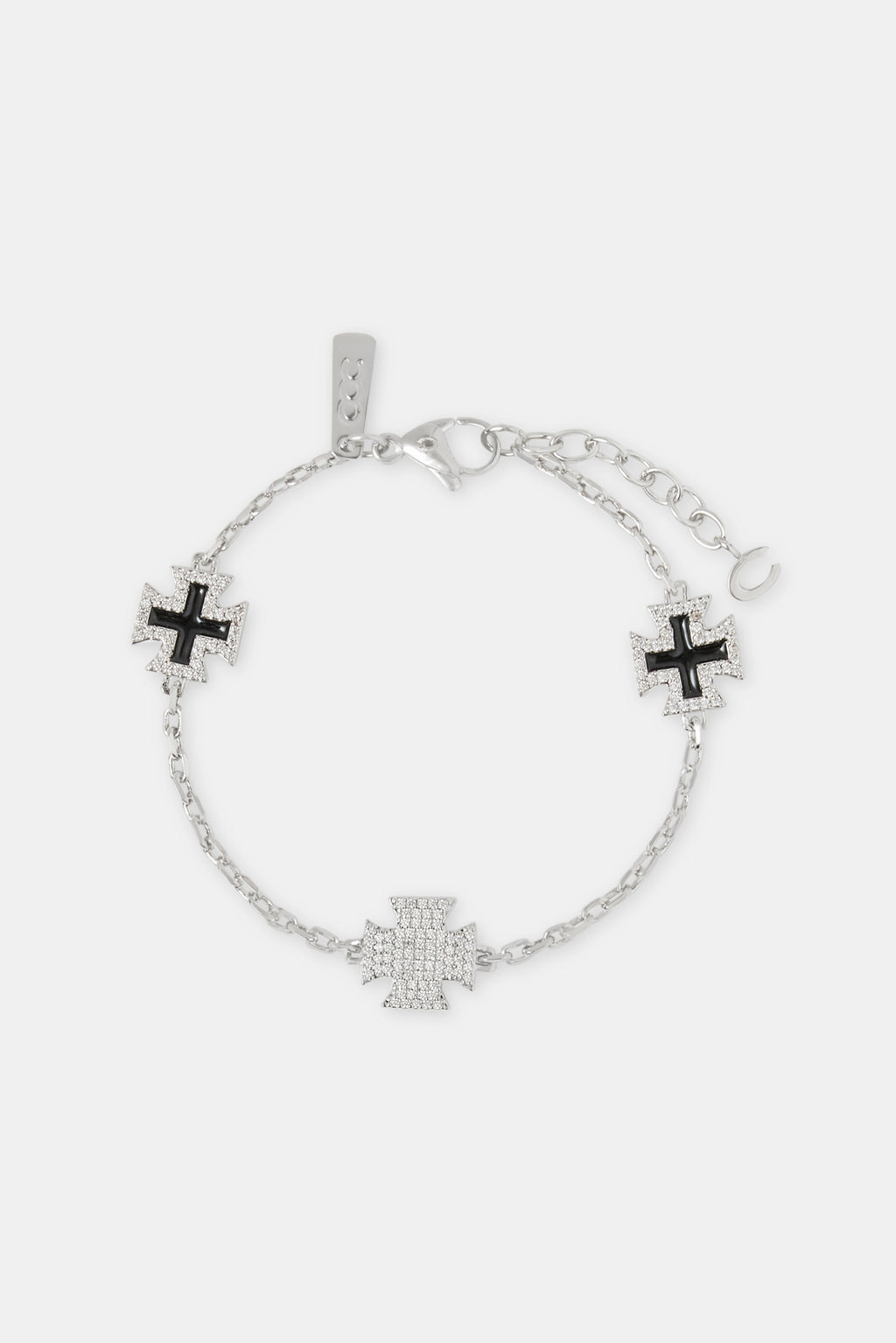 Our Iced CZ & Black Enamel Motif Bracelet is the coldest in the game. Make a statement and stack with more ice or if you feeling lowkey wear alone.