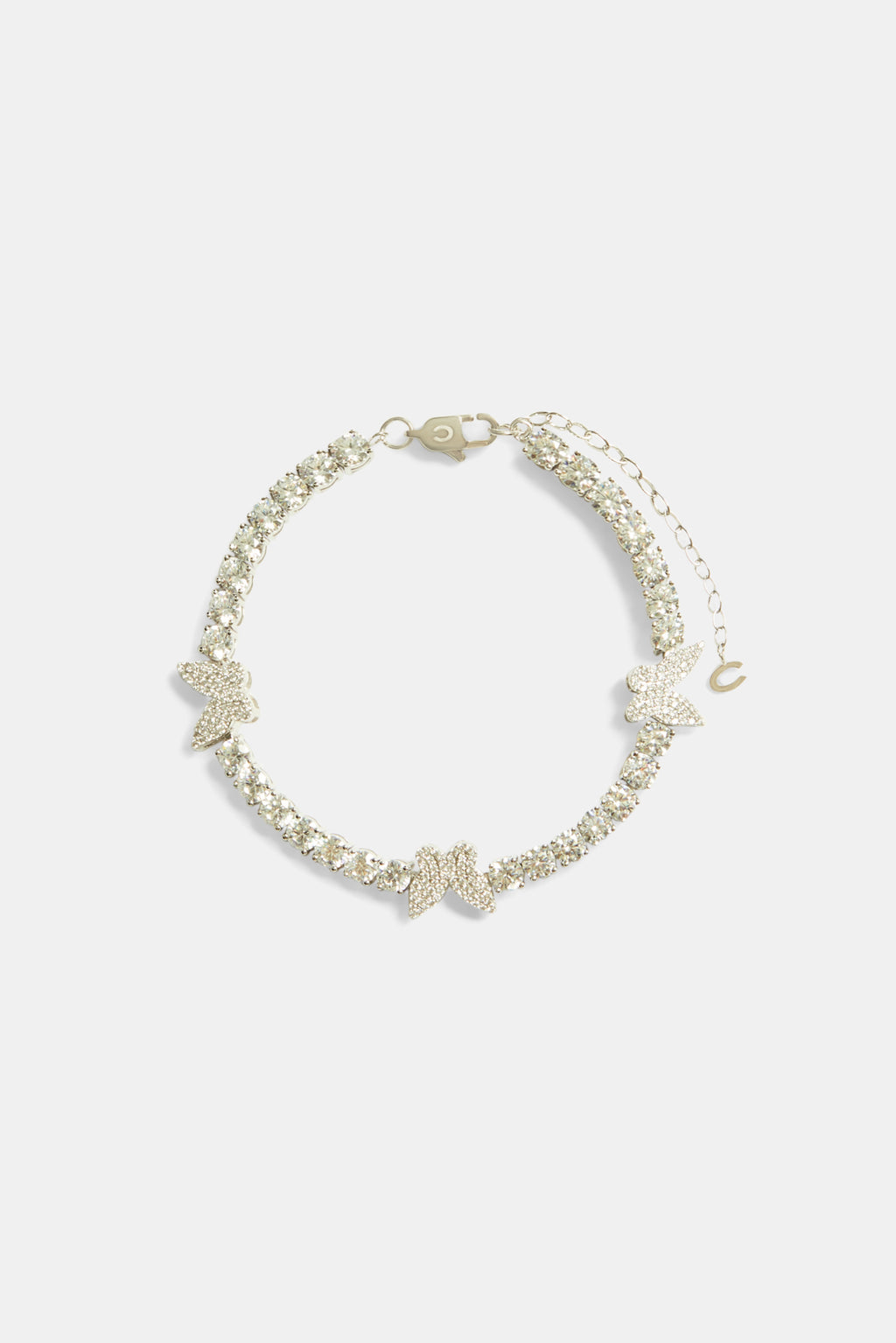 This anklet is the perfect piece to complete your summer look. Butterfly motif formed with hand-set stones for extra shine.