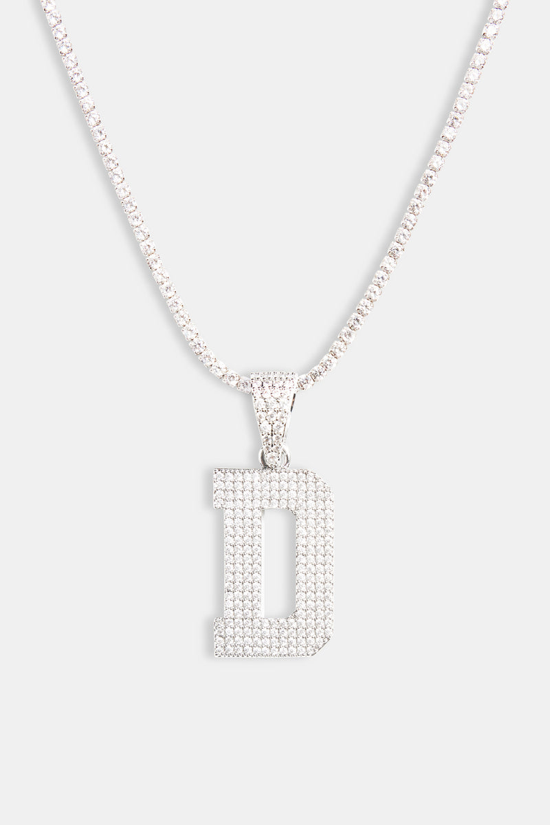 Iced Letter Motif Pendant in White and finished with Cubic Zirconia stones.