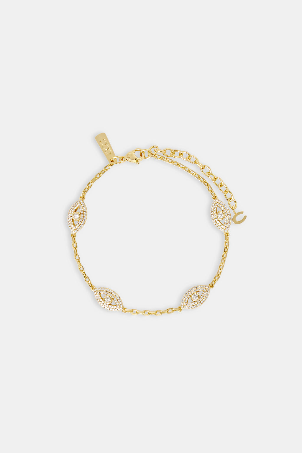 This anklet brings the iconic evil eye charm to your rotation—fully iced and linked on a clean rolo chain. Protective energy with just the right amount of sparkle.