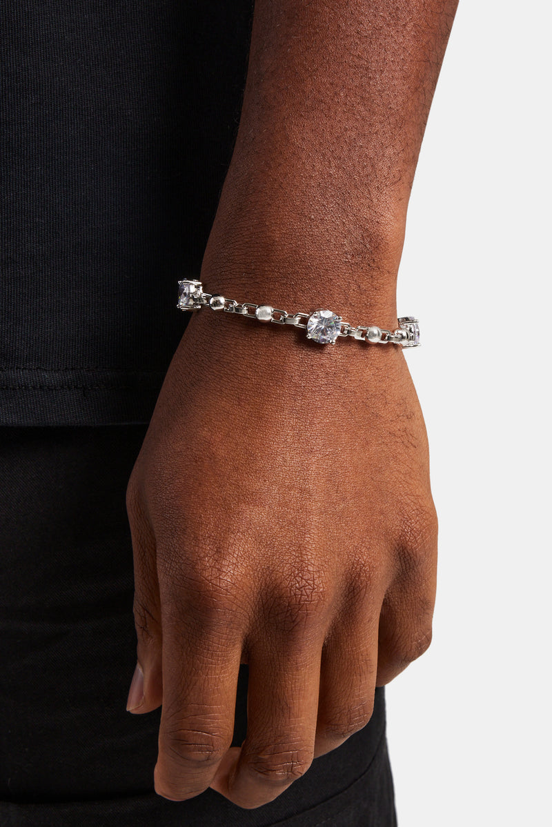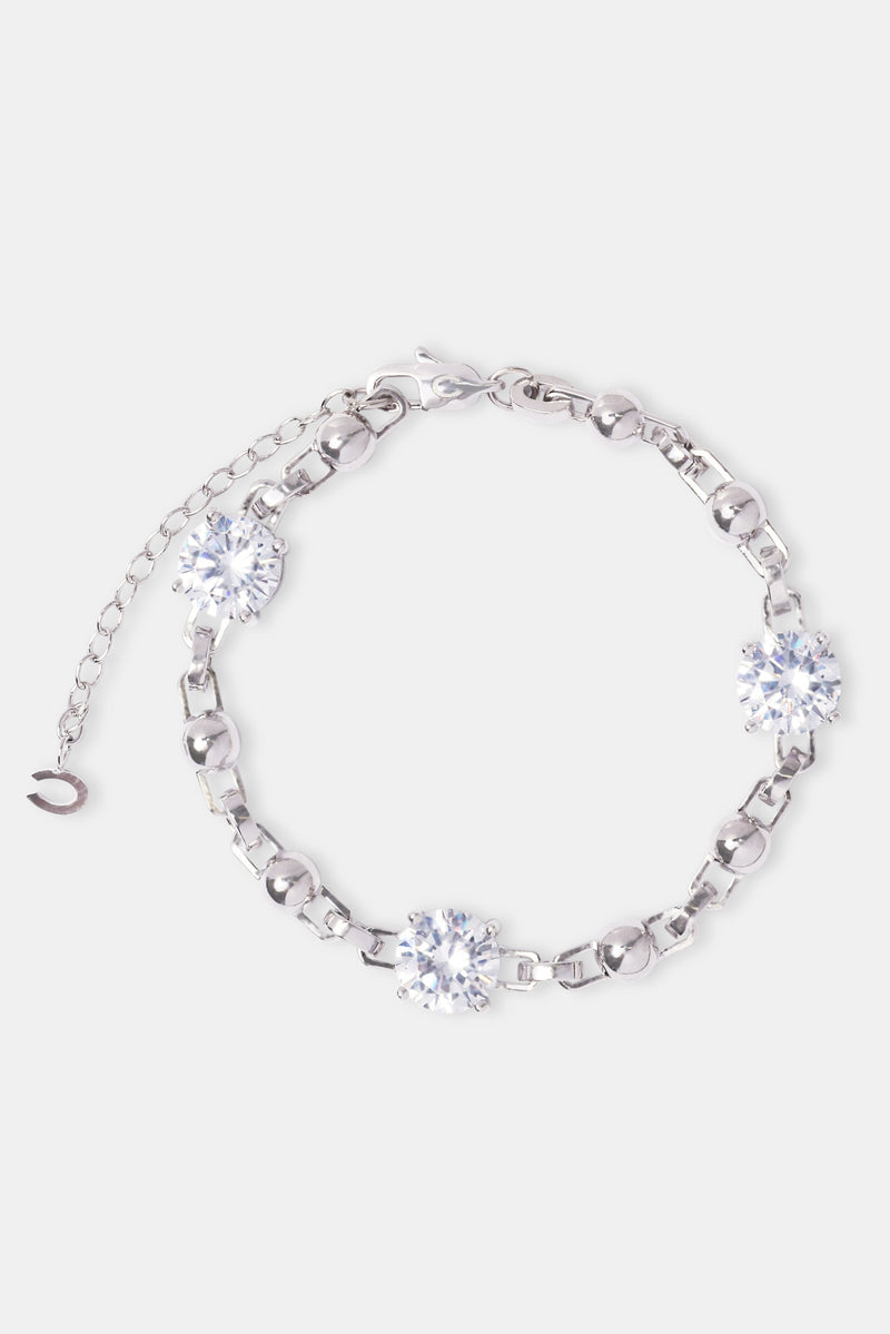 Iced Gem & Ball Mix Chain Bracelet - White