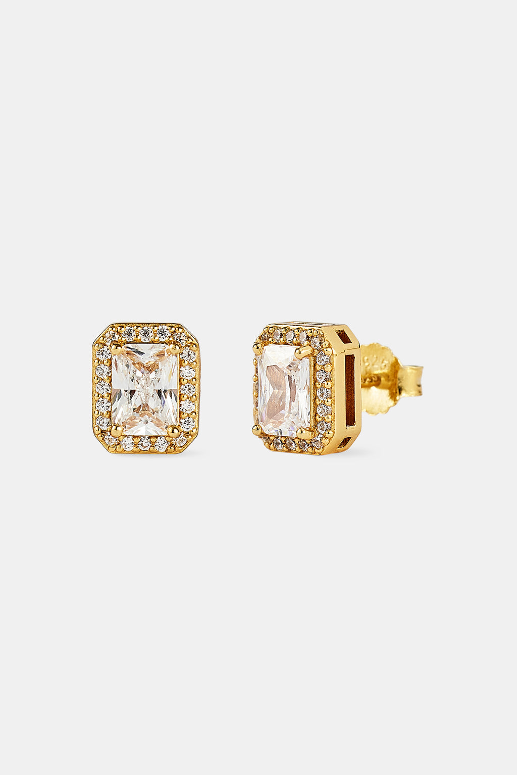 The Iced Gemstone Stud Earrings bring that clean sparkle with a bold centre stone and pave-set edge—built to level up your daily look