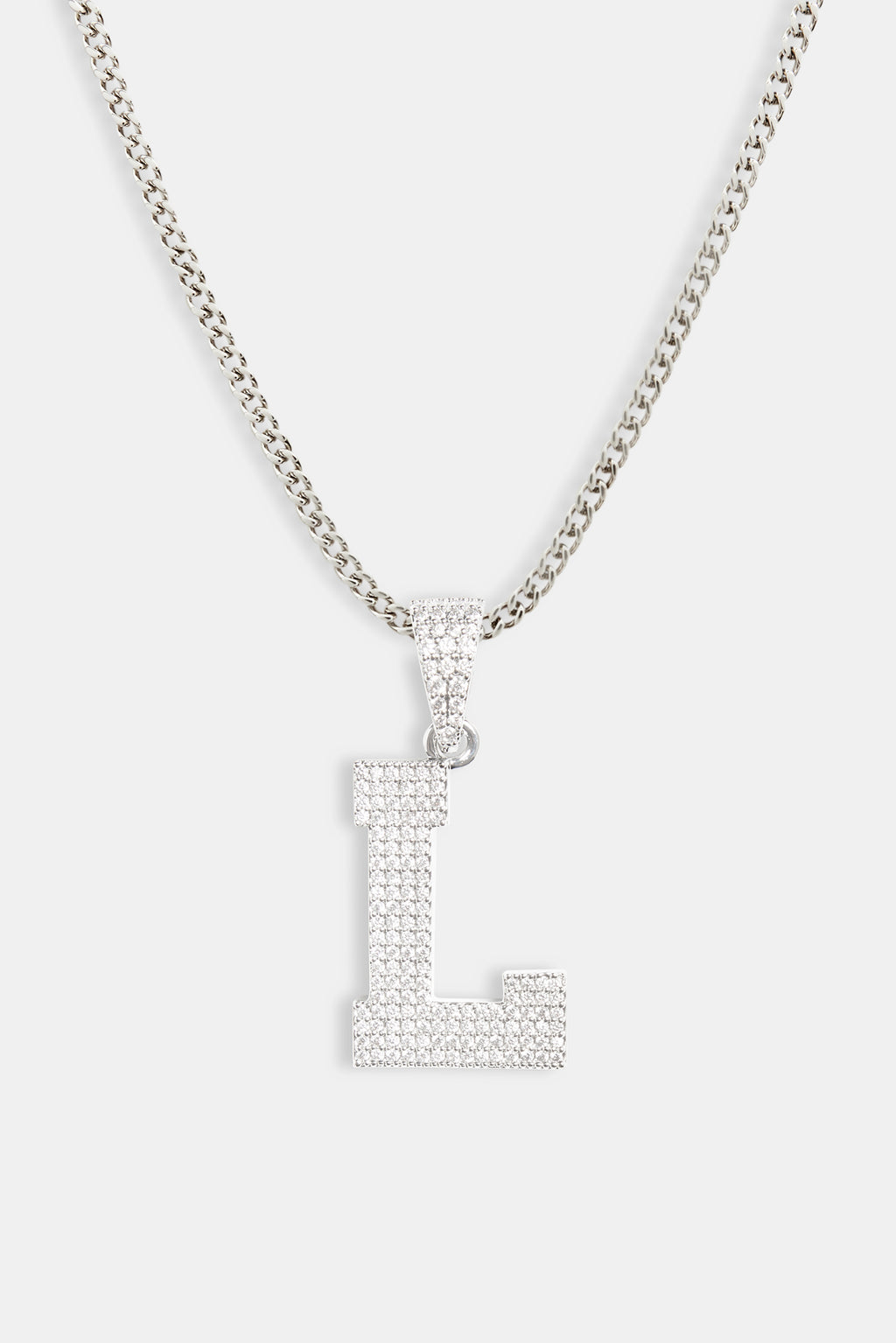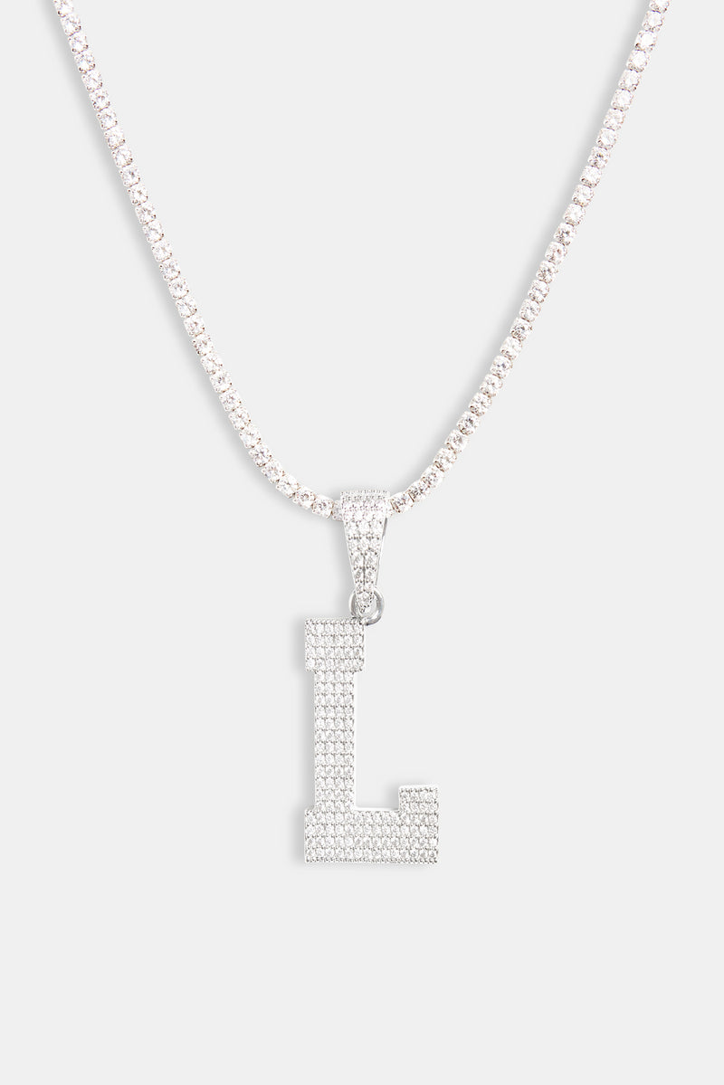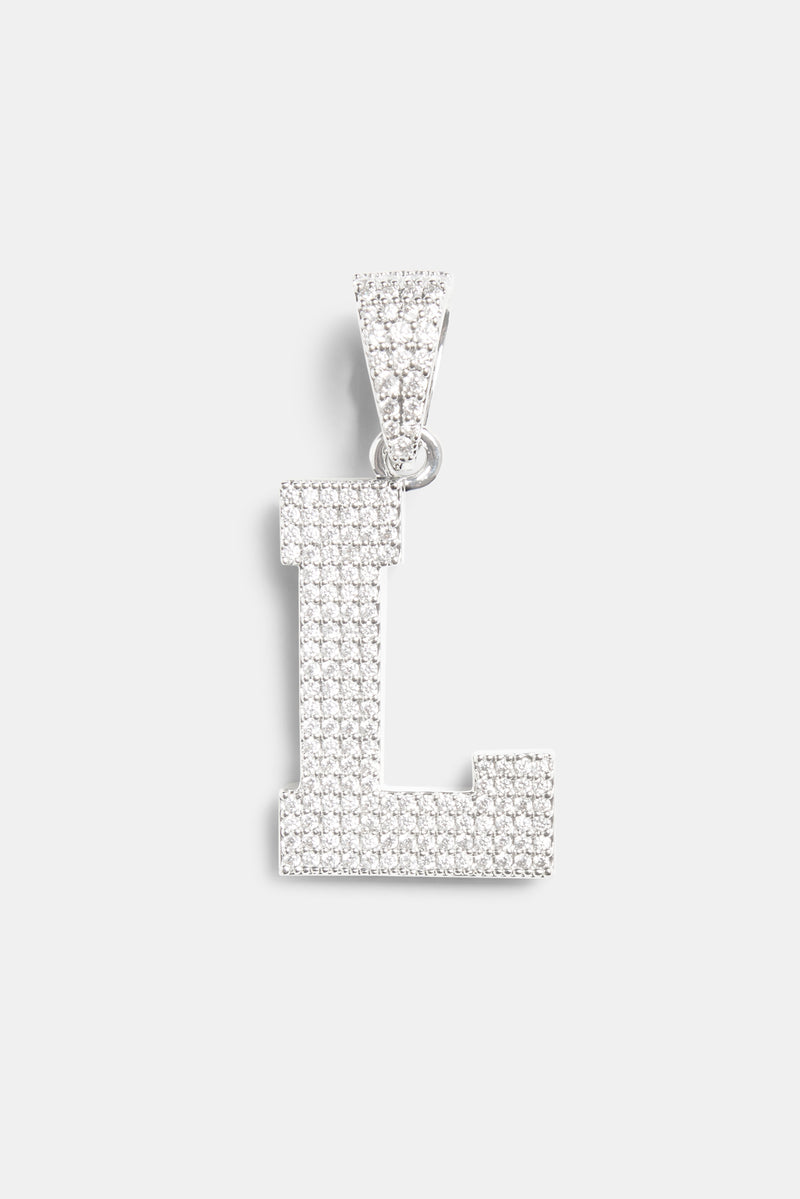 Iced Letter Motif Pendant in White and finished with Cubic Zirconia stones.