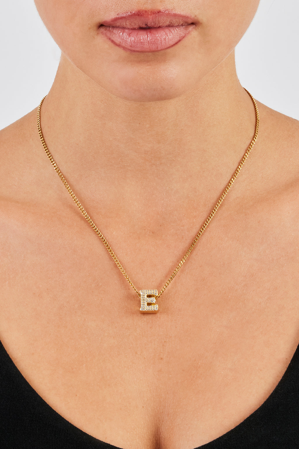 These new 12mm Letter Pendant charms in gold sparkle from all angles as they're flooded with iced out stones. These fit perfectly on our Micro Cuban Chain.