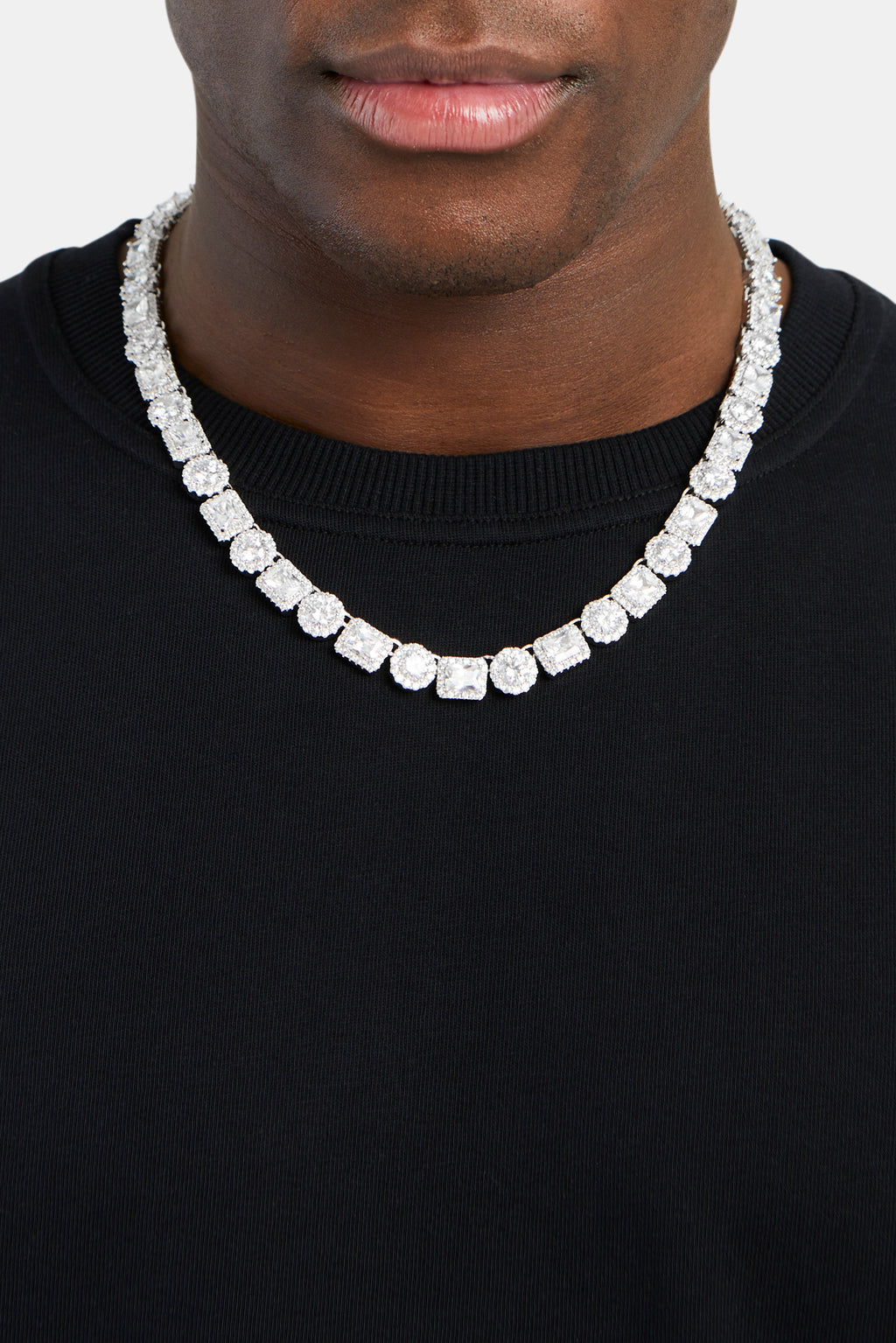 Our Iced Mixed Shape Tennis Chain can be worn 24/7 and for special occasions. Pair with a Mixed Shape Tennis Bracelet or our classic Tennis Bracelet, to complete the look.