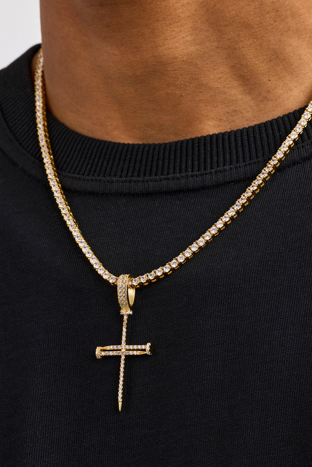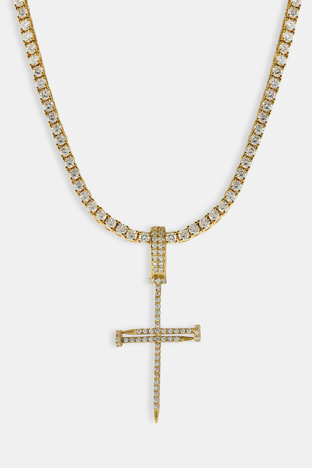 Our Iced Nail Cross Pendant 3mm Tennis Necklace brings a different vibe to your everyday fits. For the ultimate flex, add in a bracelet or ring.