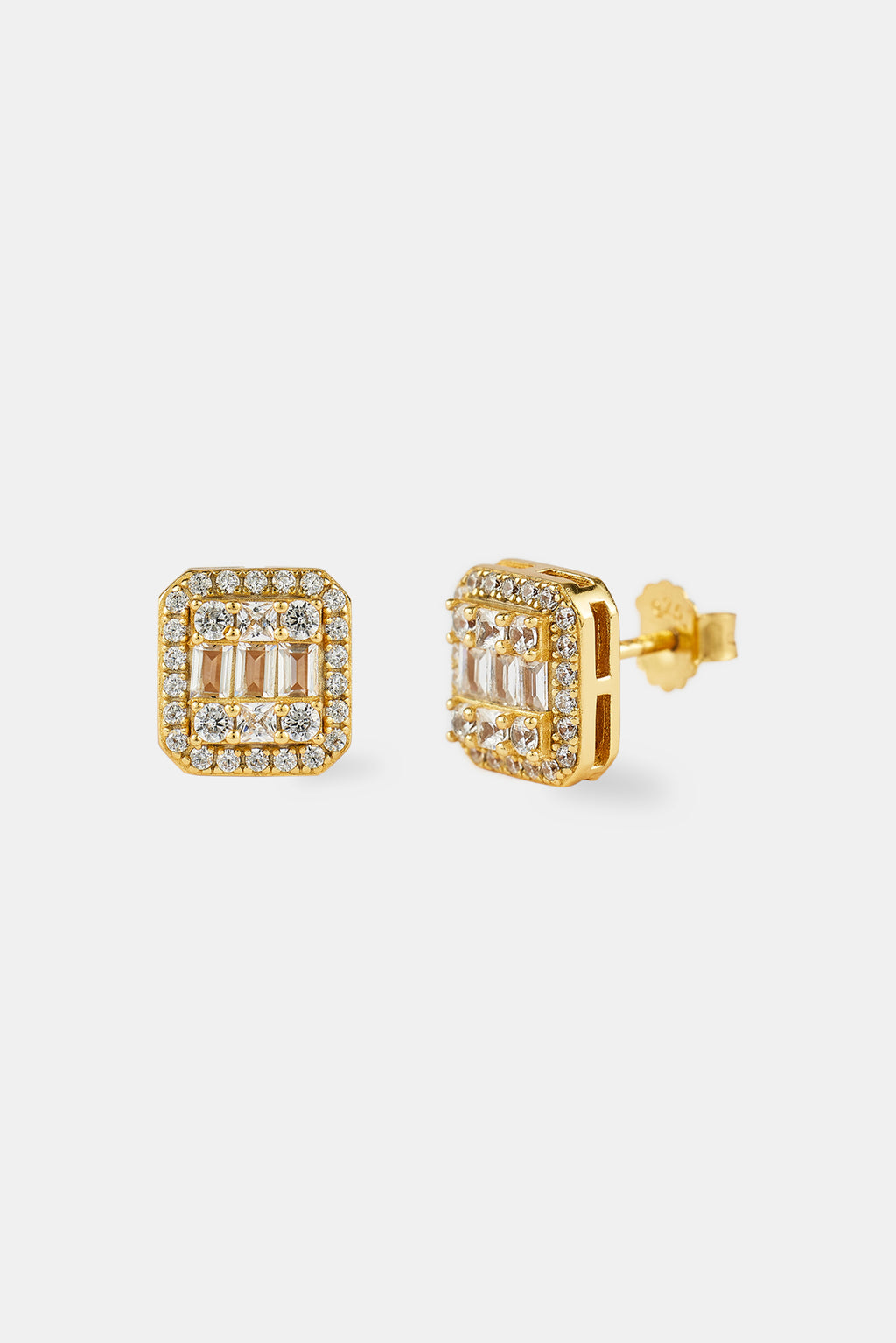 The Iced Pave & Baguette Stone Studs mix a clean baguette cut with pave detailing for that sharp, icy finish. Subtle flex for everyday drip.