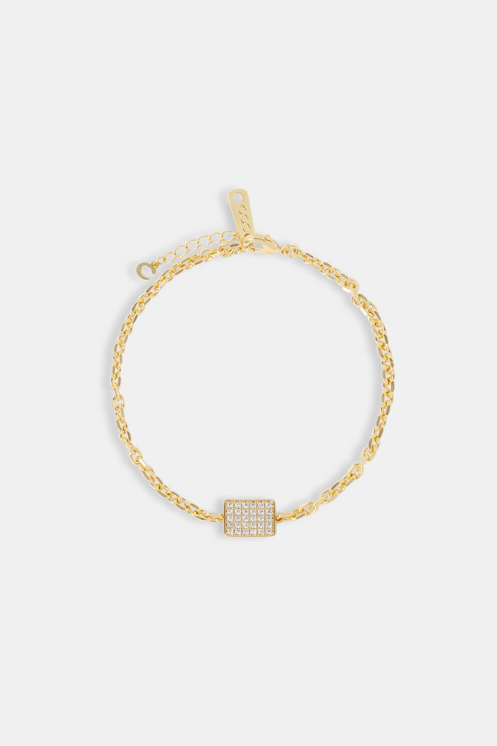 The Iced Pave Rectangular Rolo Bracelet features bold rectangular links, each iced out with CZs for a clean, modern look. Solid weight, smooth drip—easy to wear, hard to miss.