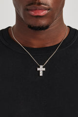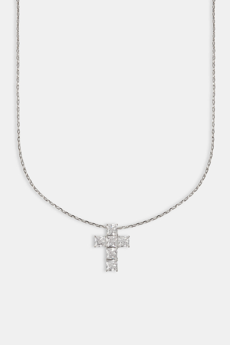 Iced Square Stone Cross Necklace - 25mm