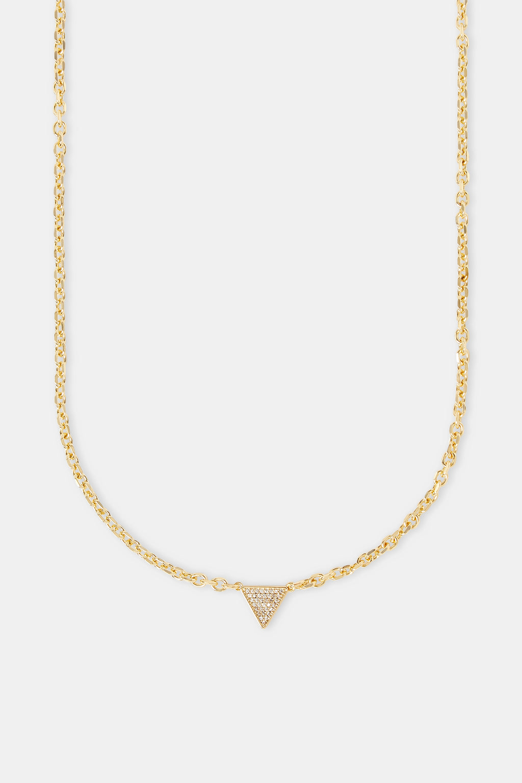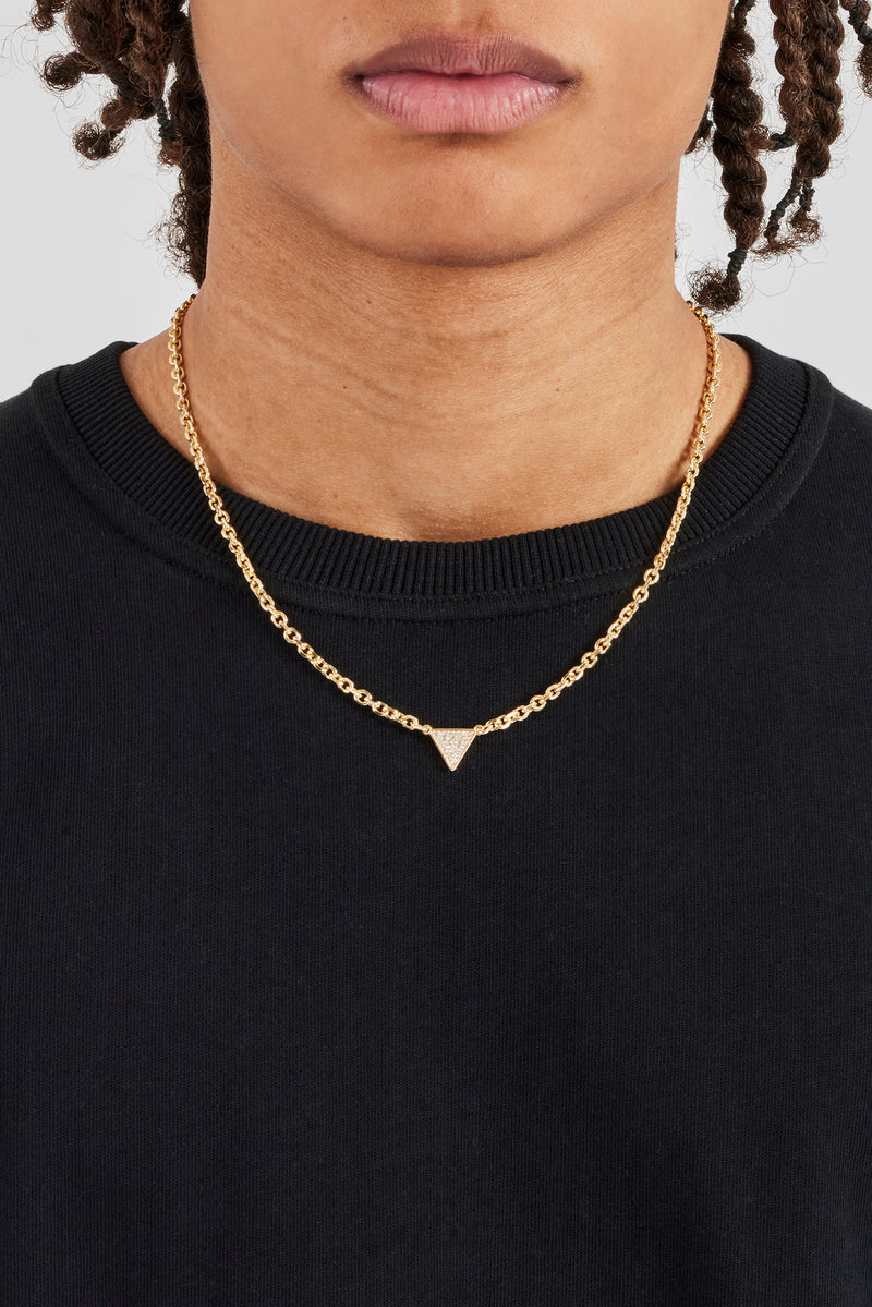 The Iced Triangular Pavé Pendant Necklace brings bold energy with a clean triangle shape, fully iced in pavé CZs. Sleek, modern, and made to stand out—day or night.