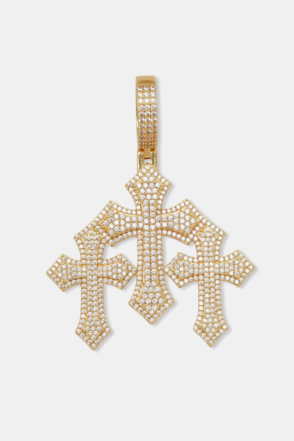 Made with handset stones, the Iced Triple Cross Pendant is unmatched in shine for unparalleled style.