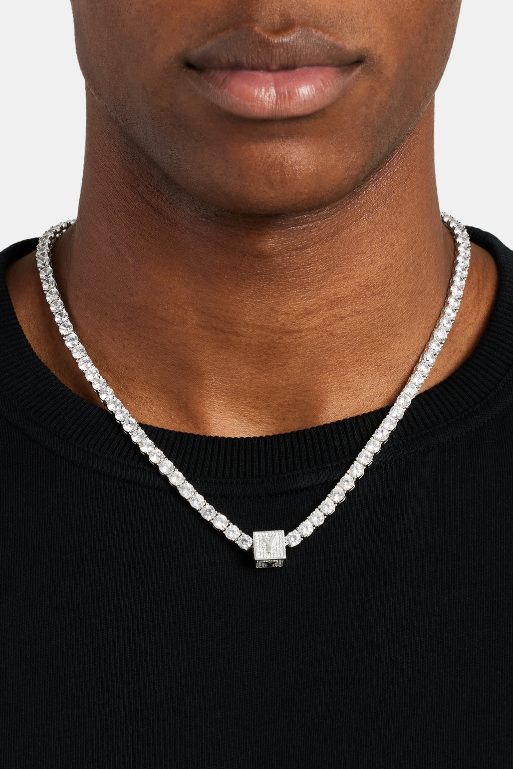 Select stone: Iced Y Letter Block Pendant