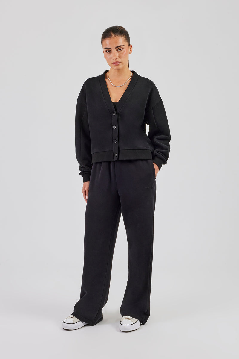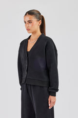 Black boxy fit cardigan, in a premium soft touch jersey.