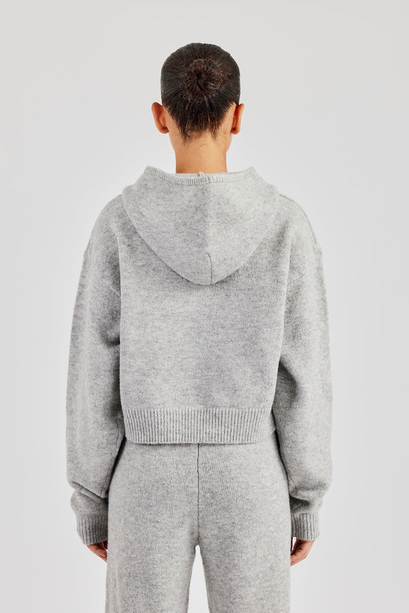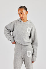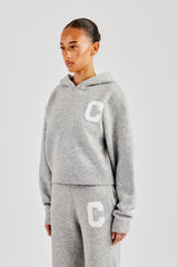 Light grey over the head hoodie in a soft touch knit with jacquard contrast C logo.