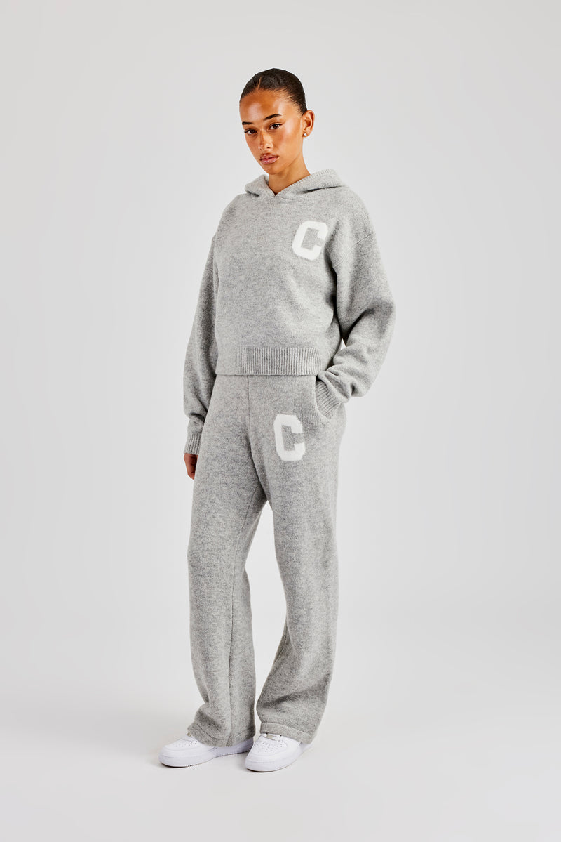 Wide leg jogger in a soft touch knit with jacquard C logo. Pair with matching knitted hoodie to complete the look.