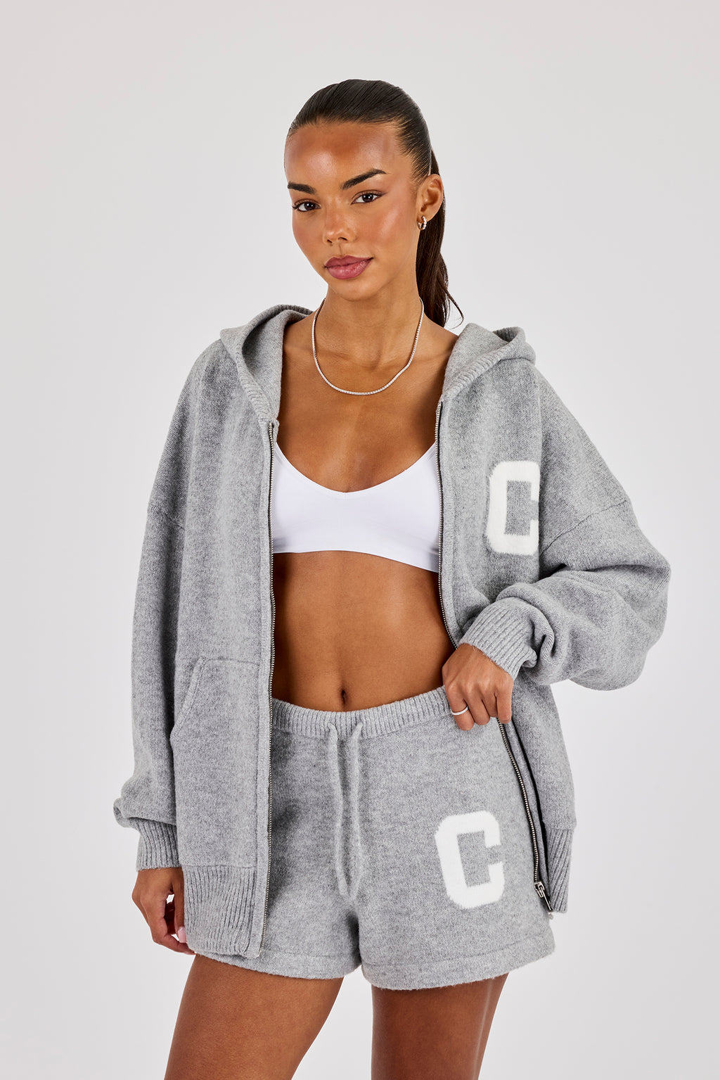Our C knitted short in a soft touch textured knit. Style with matching knitted zip through hoodie to complete the look.