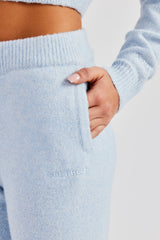 Baby blue knitted flare in a soft touch knit with Cernucci branded tonal embroidery.
