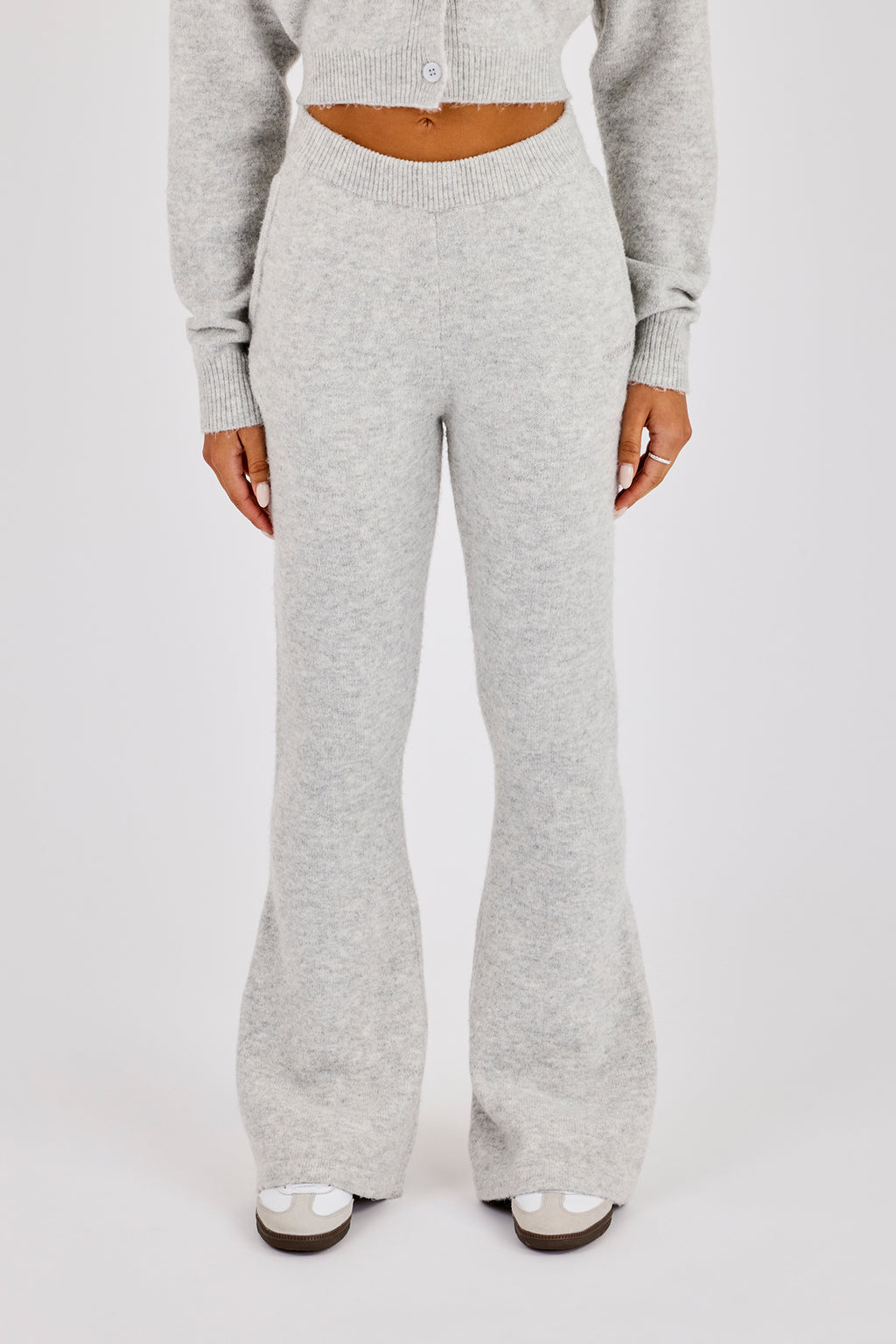 Grey knitted flare in a soft touch knit with Cernucci branded tonal embroidery.