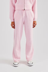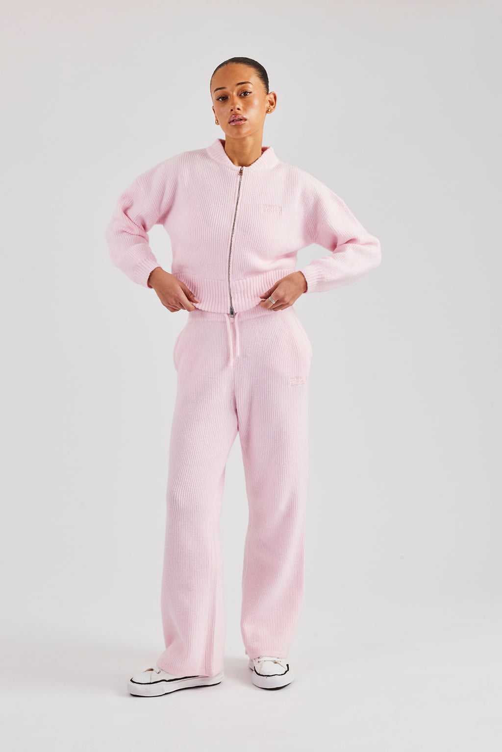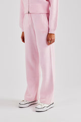 Baby pink straight leg jogger in a soft touch knit with Cernucci branded embroidery.