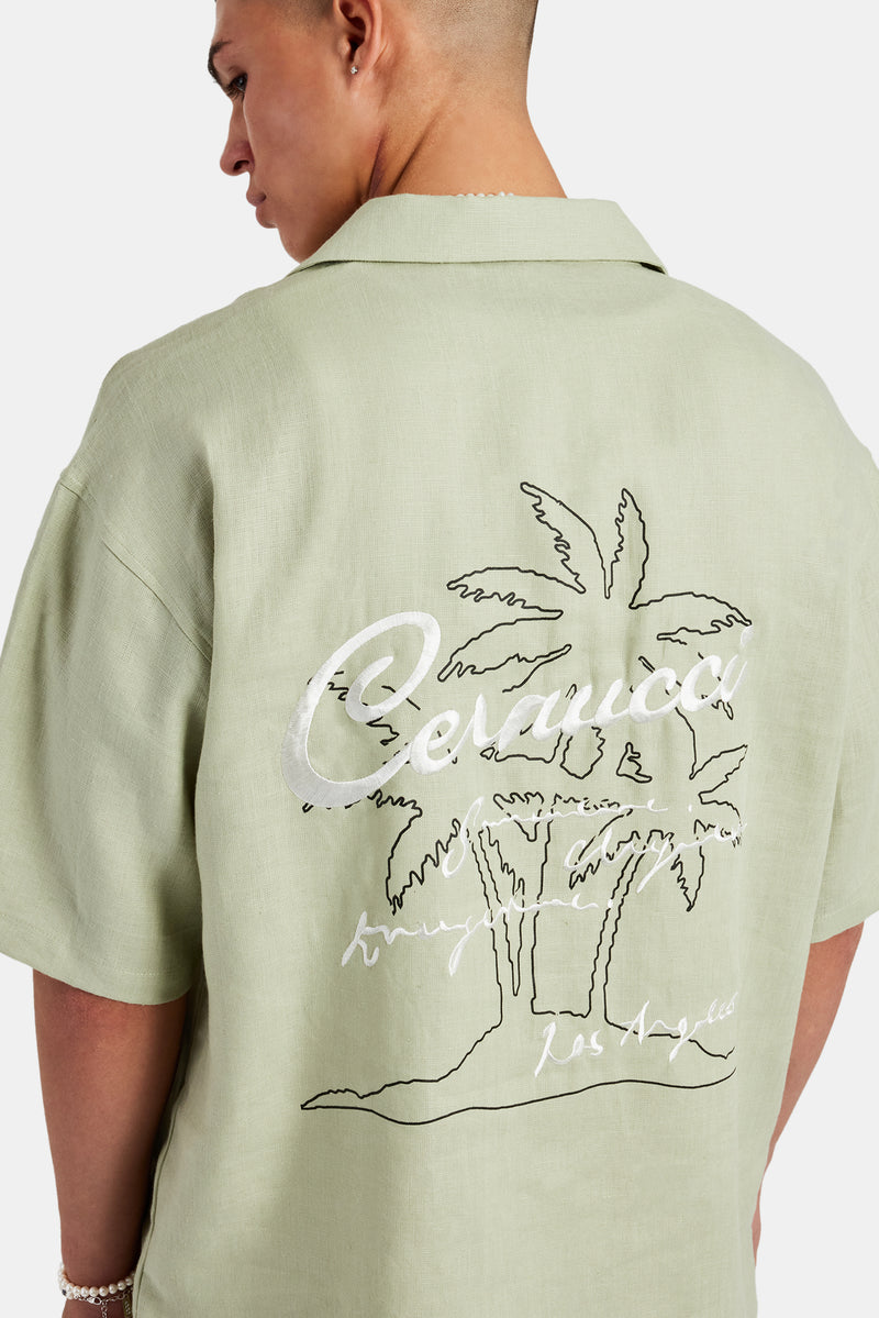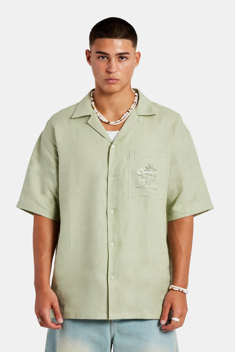 Our sage short sleeve shirt, a summer wardrobe staple, versatile for any occasion. Made from premium, light weight, breathable fabric. Complete the look with our bleach wash bermuda short.
