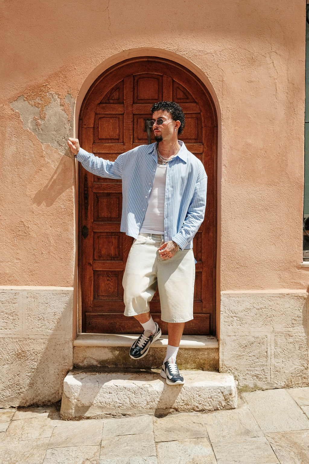 Cotton stripe shirt in an oversized boxy fit featuring Cernucci branded label.