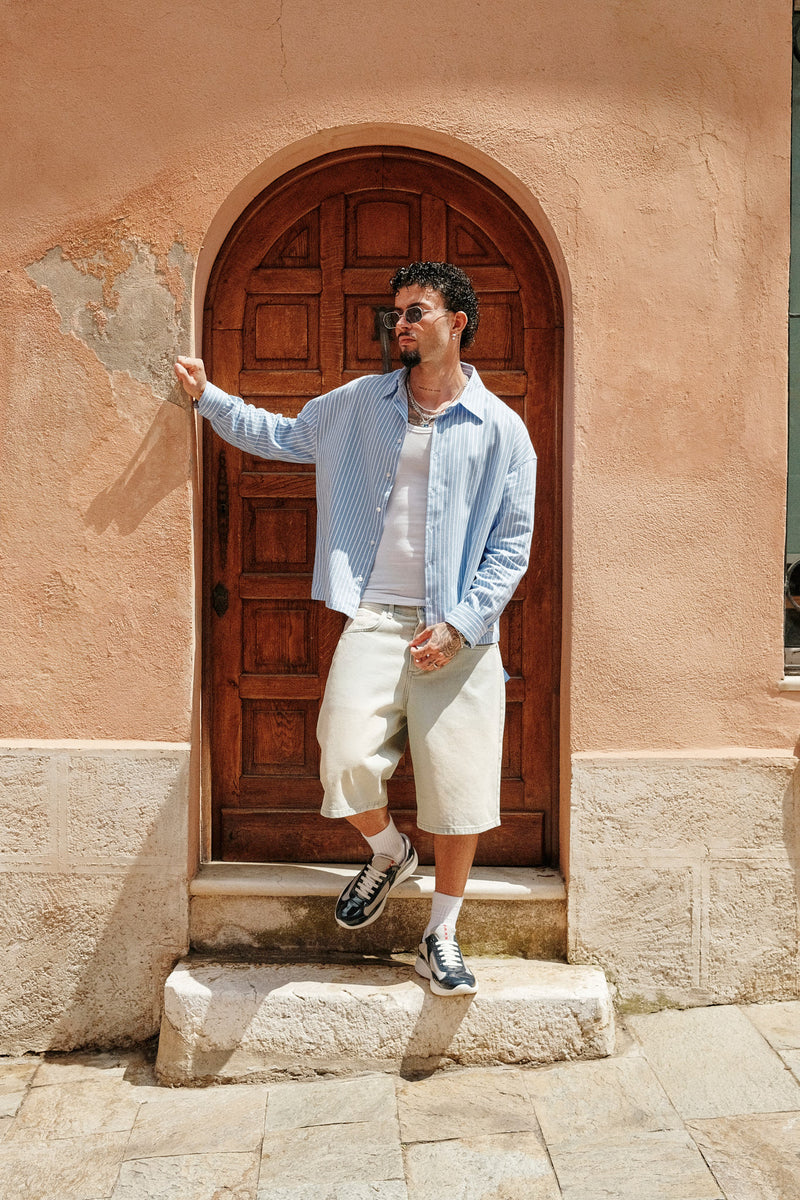 Long Sleeve Boxy Stripe Shirt - Blue