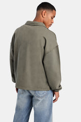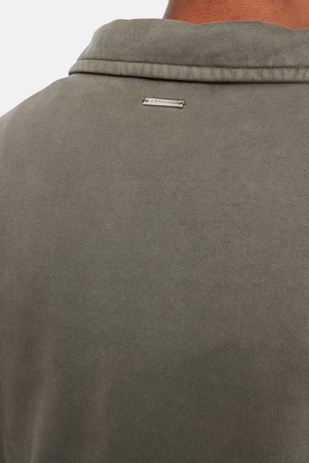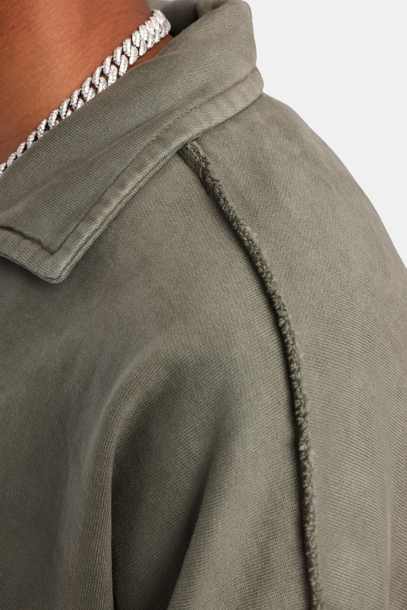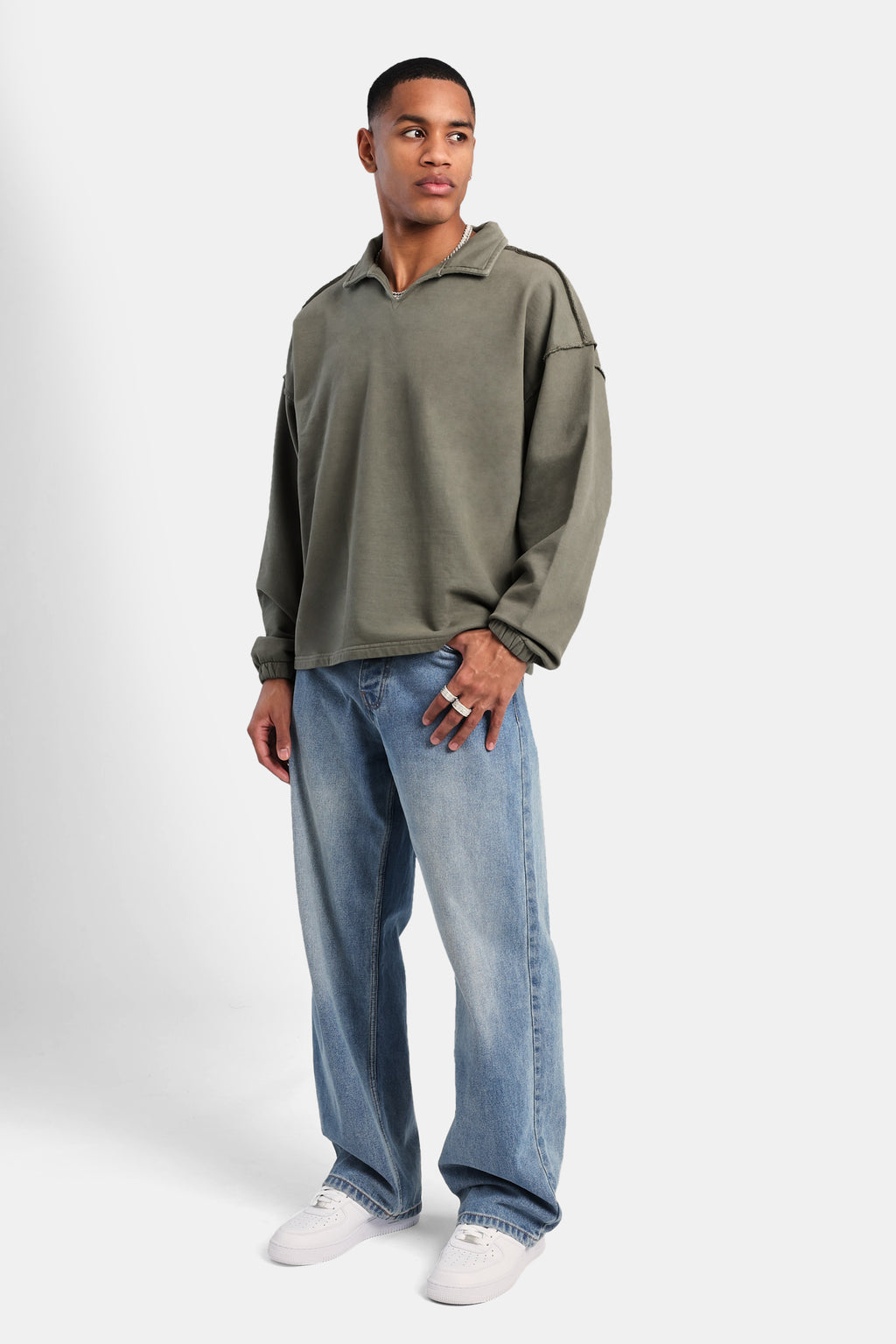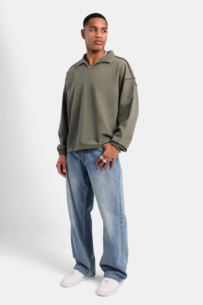 Washed Green Collared Sweat in a relaxed fit. Premium Heavyweight soft touch jersey with distressed hem details.