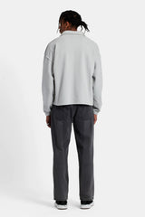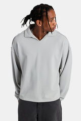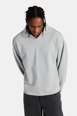 Washed Grey Collared Sweat in a relaxed fit. Premium Heavyweight soft touch jersey with distressed hem details.