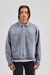 Panelled pocket detail denim jacket, oversized boxy fit in a rigid cotton denim. Finished with branded trims and raw hem detail. Pair with the matching jeans for the full look.