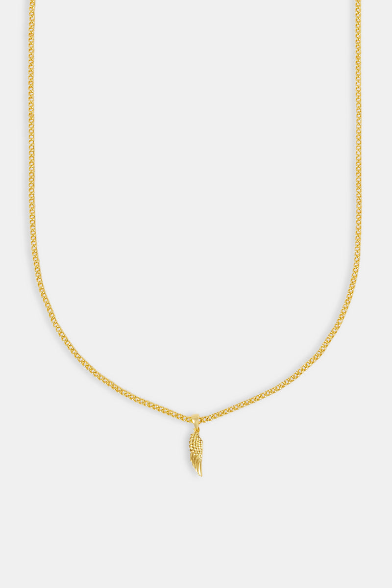 Blessed with style. This 15mm Micro Angel Wing Necklace in gold is all about heavenly shine with a street edge. Dripping in precision-cut stones, it’s a subtle flex that still catches every eye. Wear it solo for a clean, everyday glow, or stack it up and take your drip to the next level. Either way, you’re golden.