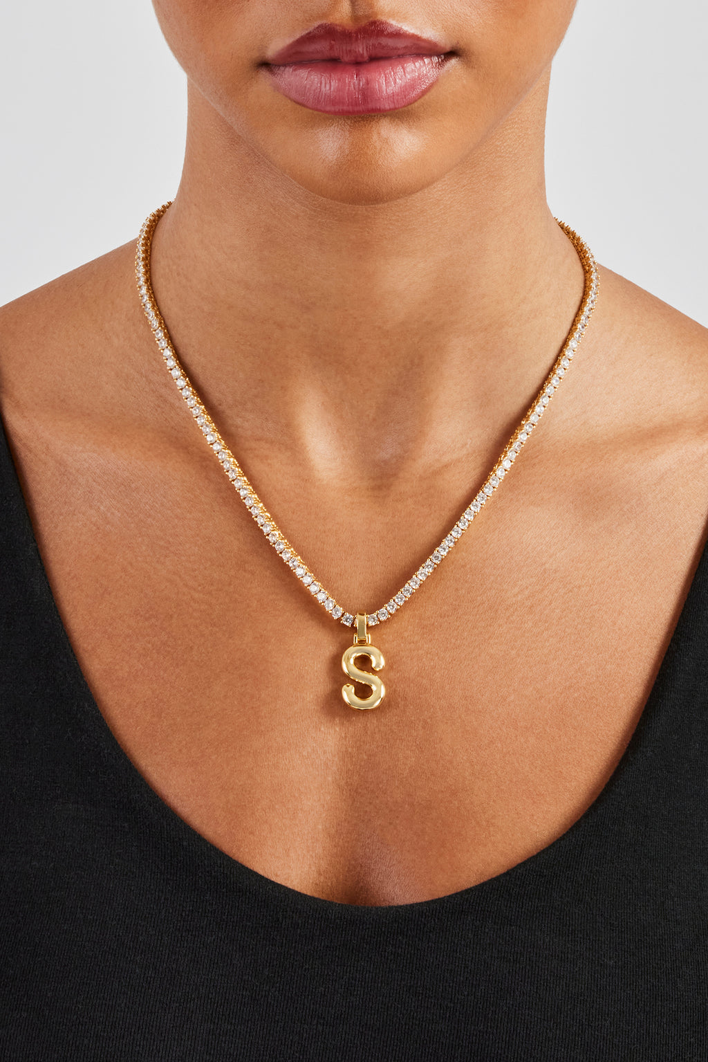 Our Mini Polished Balloon Letter Pendant & 3mm Tennis Chain is a fresh take on our letter pendants. Stack them for a uniformed style Guaranteed to upgrade your fit; stacked or solo, its the perfect pendant. Unmatched shine for unparalleled style.