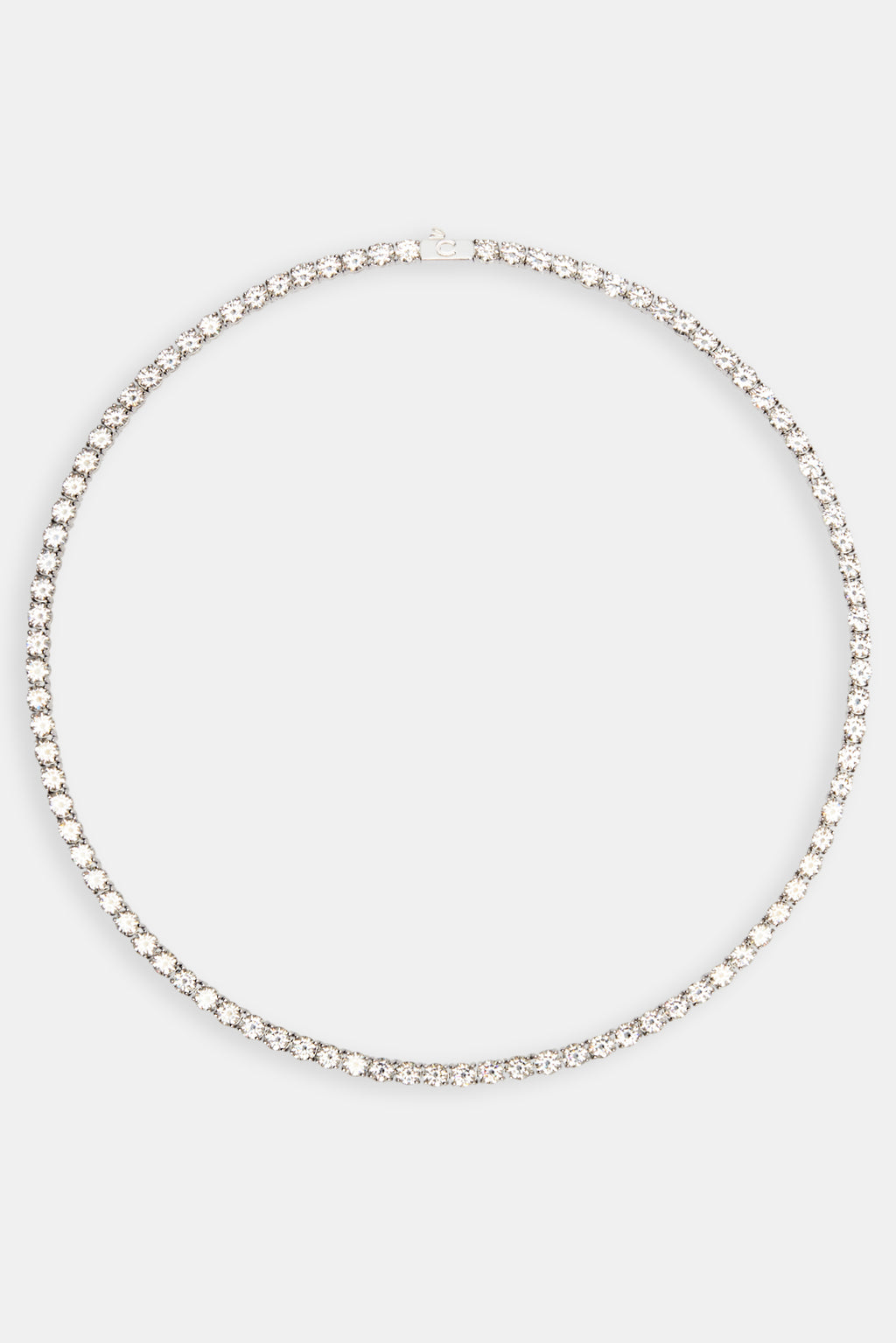 Our classic moissanite tennis chain had a round brilliant cut and VVS clarity meaning the diamonds are completely colourless on the eye. They will test positive as diamonds on most handheld diamond testers. The perfect alternative to large diamonds that cost thousands.