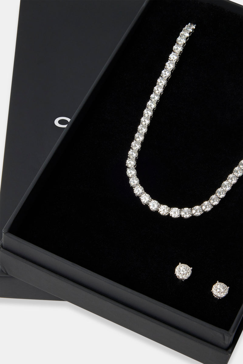 The perfect gift set for the ice lover. Featuring our stand out Moissanite 5mm Tennis Chain in 18" length paired with our Moissanite Cluster Studs. This gift is sure to make a statement.